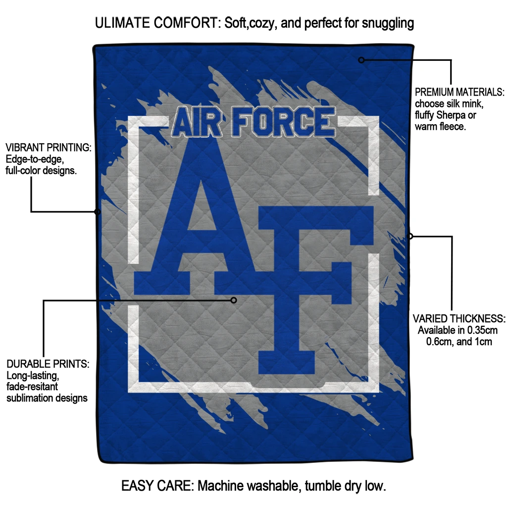 The Air Force Falcons Block Border Blue Quilt Blanket is more than a blanket—it’s everyday comfort, thoughtfully made. Crafted from premium quilting fabric with a soft microfiber touch, it offers a smooth hand-feel and lasting coziness. Layered quilting with a cotton-filled core provides adaptable warmth across seasons while maintaining a clean, tailored look on your bed or sofa.