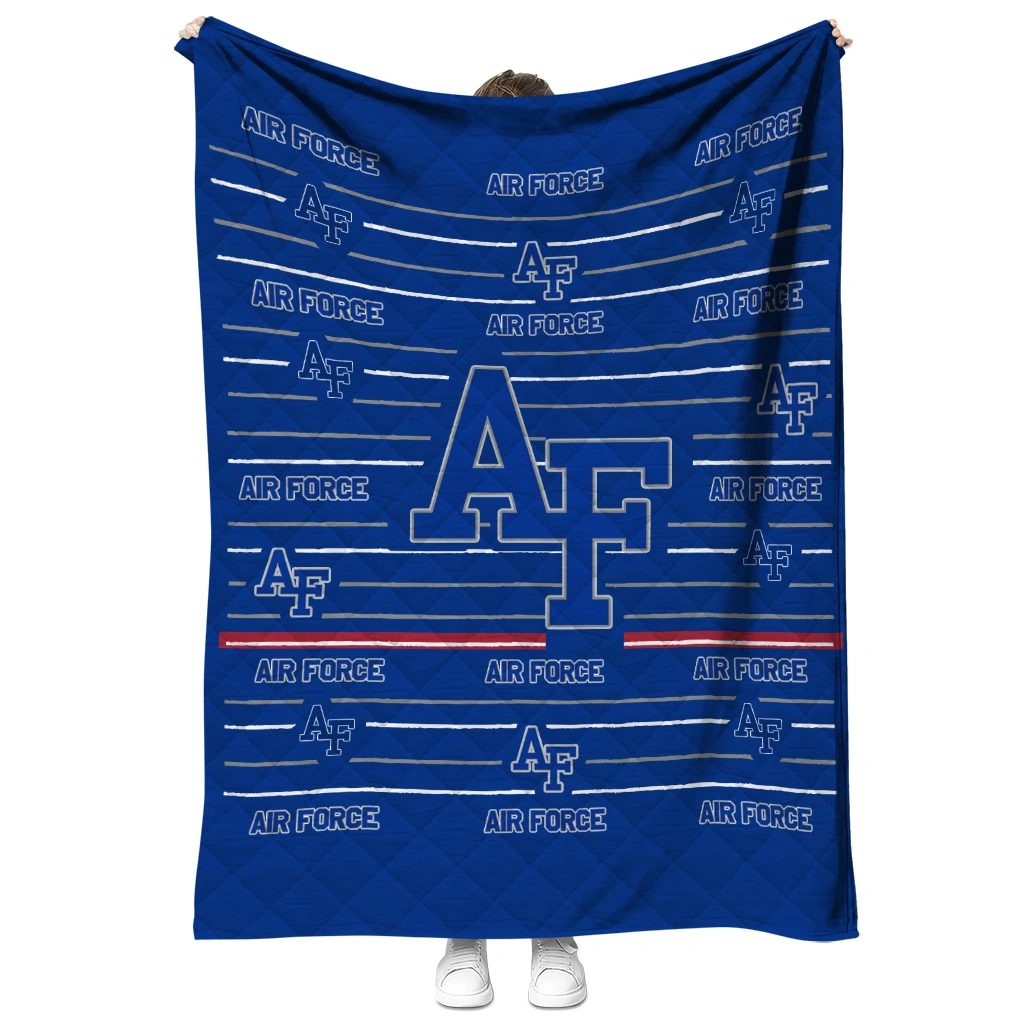 Wrap yourself in warmth and pride with the Air Force Falcons Handdrawn Stripes Blue Quilt Blanket from the Air Force Falcons Blankets collection at Yes That Blanket. Made from 100% premium quilting-weight polyester blended with a touch of microfiber, this quilt offers a smooth, soft finish you’ll love. Choose between two quilting styles—Stipple or Diagonal—and enjoy the comfort of a cotton-filled layer inside that adds extra coziness for every season. The border is available in classic black or white, giving your design a clean, timeless edge.