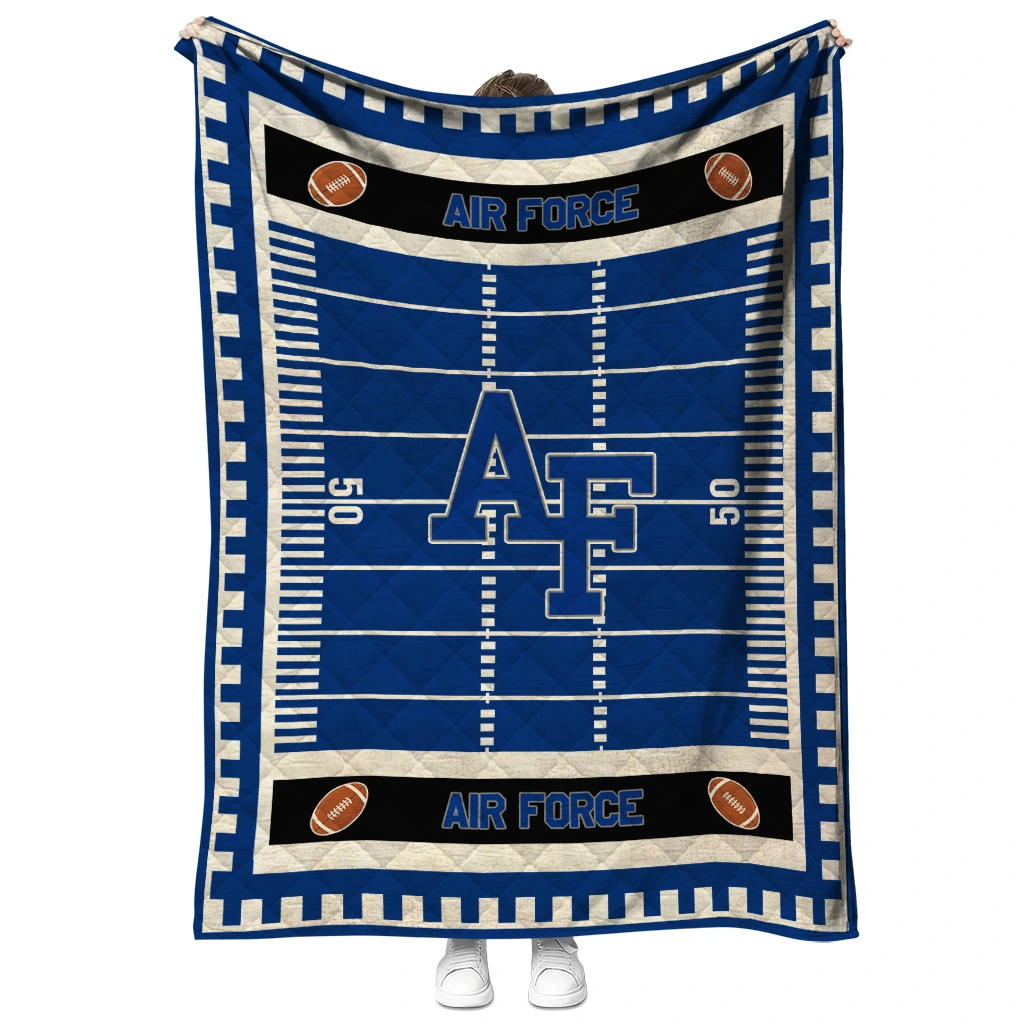 Wrap yourself in warmth and pride with the Air Force Falcons Mickey Player Blue Quilt Blanket from the Air Force Falcons Blankets collection at Yes That Blanket. Made from 100% premium quilting-weight polyester blended with a touch of microfiber, this quilt offers a smooth, soft finish you’ll love. Choose between two quilting styles—Stipple or Diagonal—and enjoy the comfort of a cotton-filled layer inside that adds extra coziness for every season. The border is available in classic black or white, giving your design a clean, timeless edge.