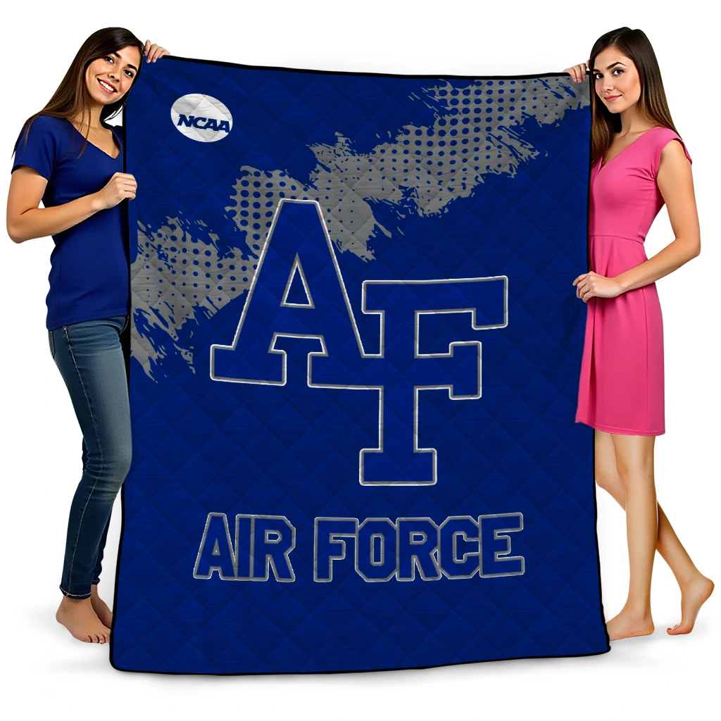 Wrap yourself in warmth and pride with the Air Force Falcons Paint Trail Blue Quilt Blanket from the Air Force Falcons Blankets collection at Yes That Blanket. Made from 100% premium quilting-weight polyester blended with a touch of microfiber, this quilt offers a smooth, soft finish you’ll love. Choose between two quilting styles—Stipple or Diagonal—and enjoy the comfort of a cotton-filled layer inside that adds extra coziness for every season. The border is available in classic black or white, giving your design a clean, timeless edge.