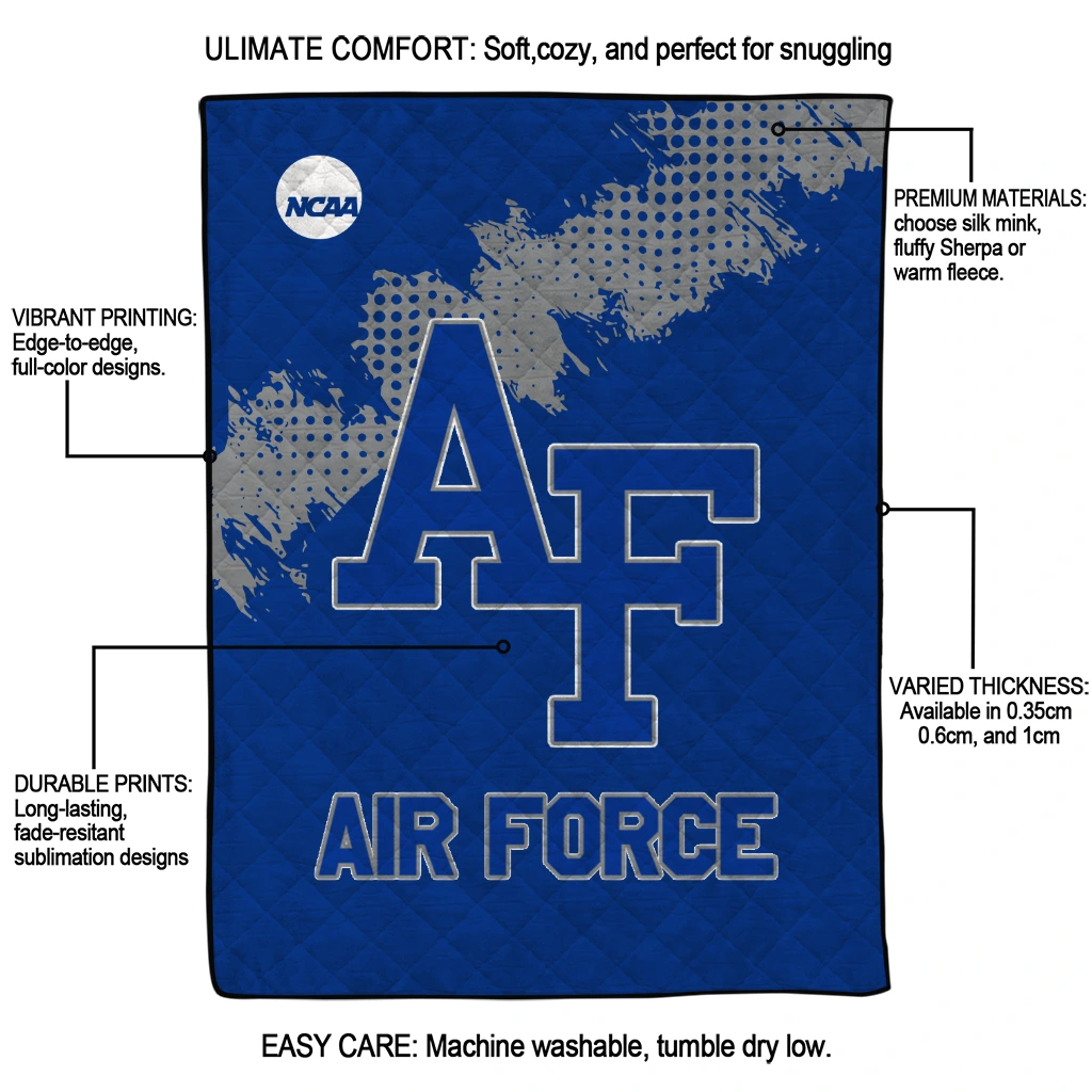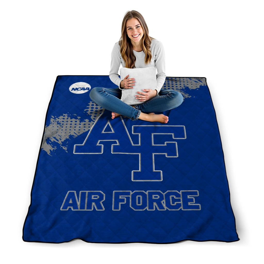 The Air Force Falcons Paint Trail Blue Quilt Blanket is more than a blanket—it’s everyday comfort, thoughtfully made. Crafted from premium quilting fabric with a soft microfiber touch, it offers a smooth hand-feel and lasting coziness. Layered quilting with a cotton-filled core provides adaptable warmth across seasons while maintaining a clean, tailored look on your bed or sofa.