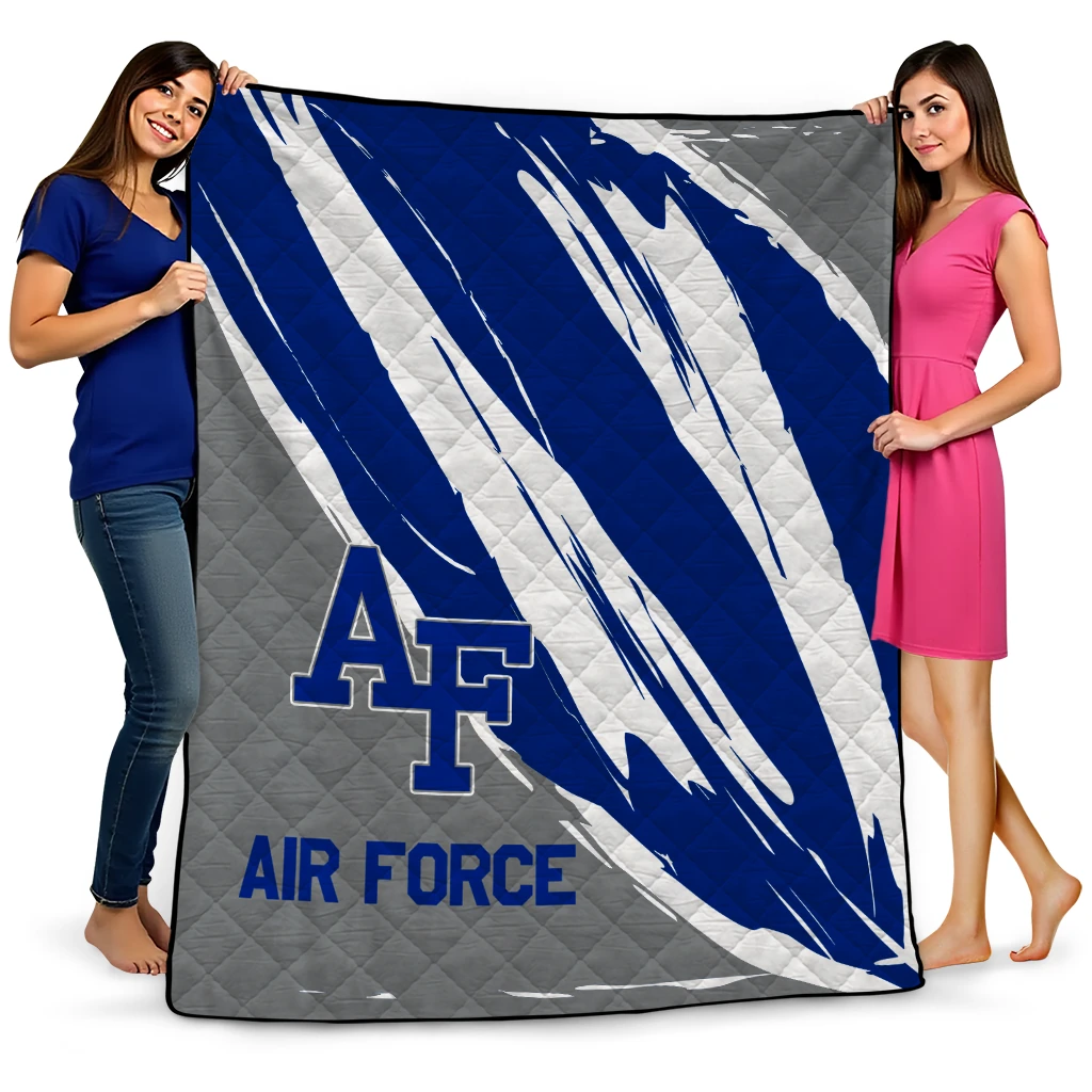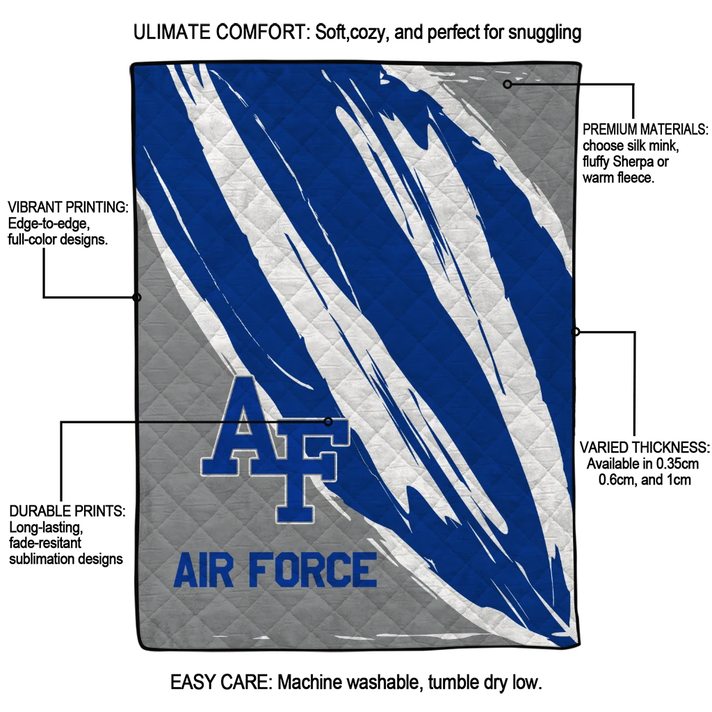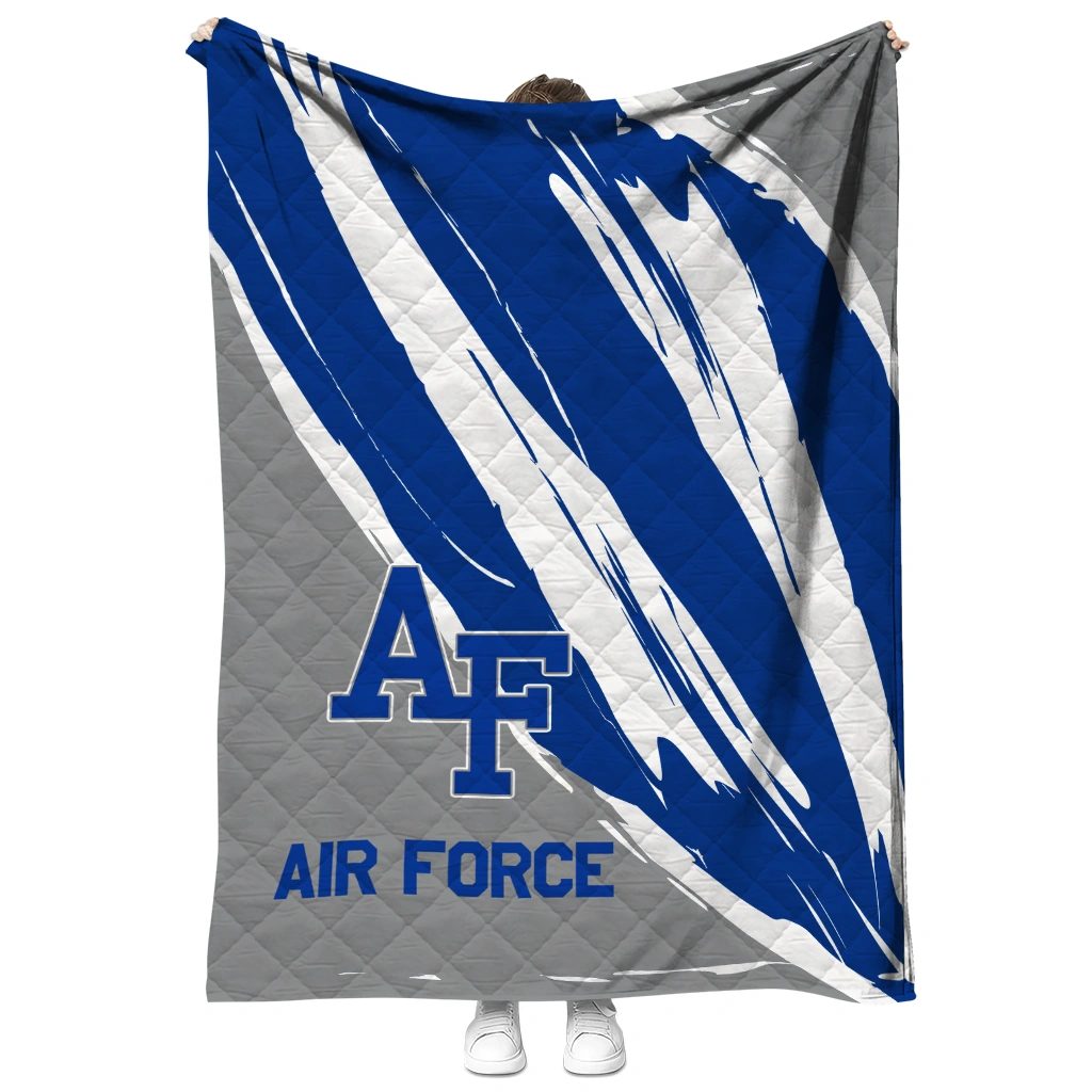 The Air Force Falcons Stroke Art Blue White Quilt Blanket is more than a blanket—it’s everyday comfort, thoughtfully made. Crafted from premium quilting fabric with a soft microfiber touch, it offers a smooth hand-feel and lasting coziness. Layered quilting with a cotton-filled core provides adaptable warmth across seasons while maintaining a clean, tailored look on your bed or sofa.