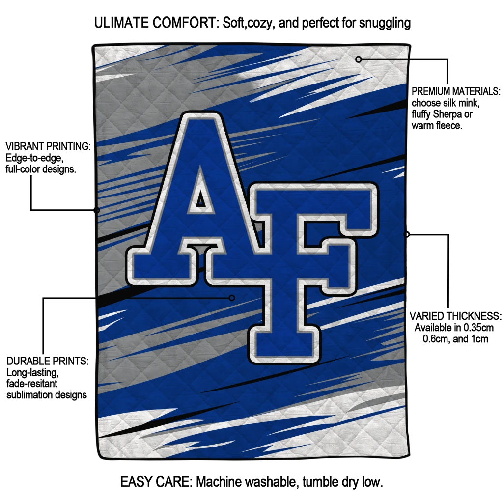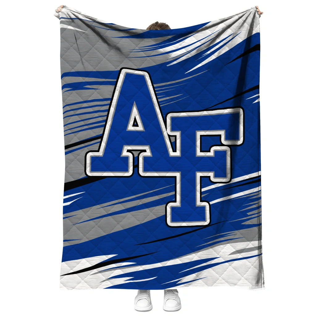 The Air Force Falcons Wild Lines Blue White Quilt Blanket is more than a blanket—it’s everyday comfort, thoughtfully made. Crafted from premium quilting fabric with a soft microfiber touch, it offers a smooth hand-feel and lasting coziness. Layered quilting with a cotton-filled core provides adaptable warmth across seasons while maintaining a clean, tailored look on your bed or sofa.