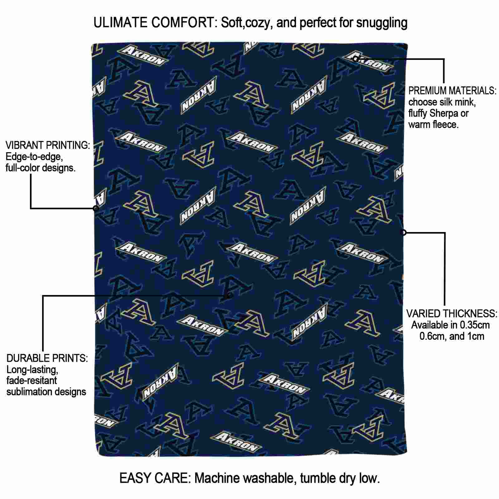 Without a doubt, the Akron Zips Diehard Fans Blue Blanket from Akron Zips Blankets collection is offering true fans a chance to showcase passion in a cool way. Personalize it with your favorite team’s logo or a meaningful name to make it uniquely yours. Isn’t that great? The full-color print ensures vibrant, edge-to-edge designs, bringing your sports enthusiasm to life!