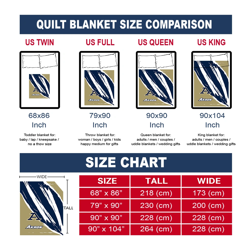 Wrap yourself in warmth and pride with the Akron Zips Stroke Art Blue White Quilt Blanket from the Akron Zips Blankets collection at Yes That Blanket. Made from 100% premium quilting-weight polyester blended with a touch of microfiber, this quilt offers a smooth, soft finish you’ll love. Choose between two quilting styles—Stipple or Diagonal—and enjoy the comfort of a cotton-filled layer inside that adds extra coziness for every season. The border is available in classic black or white, giving your design a clean, timeless edge.