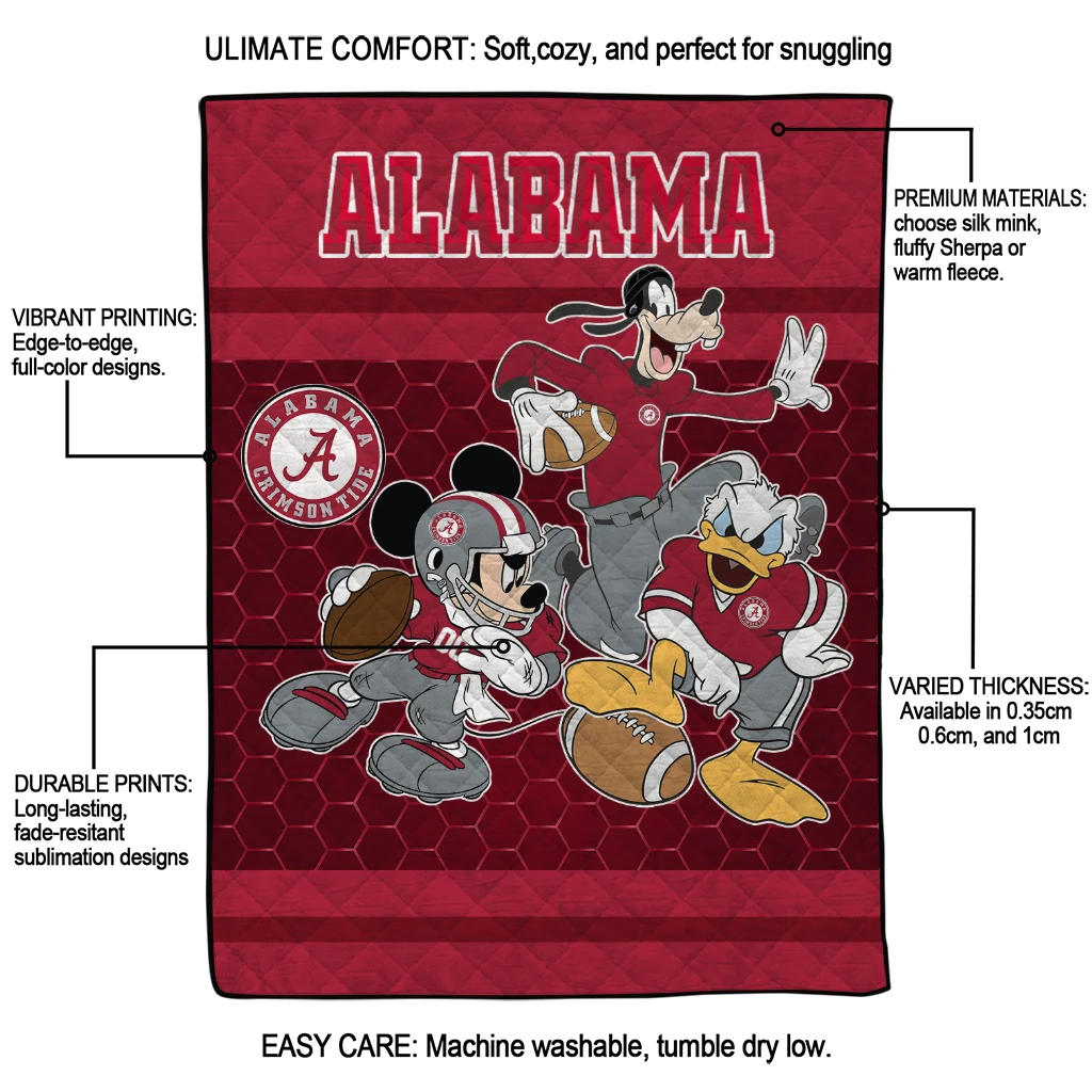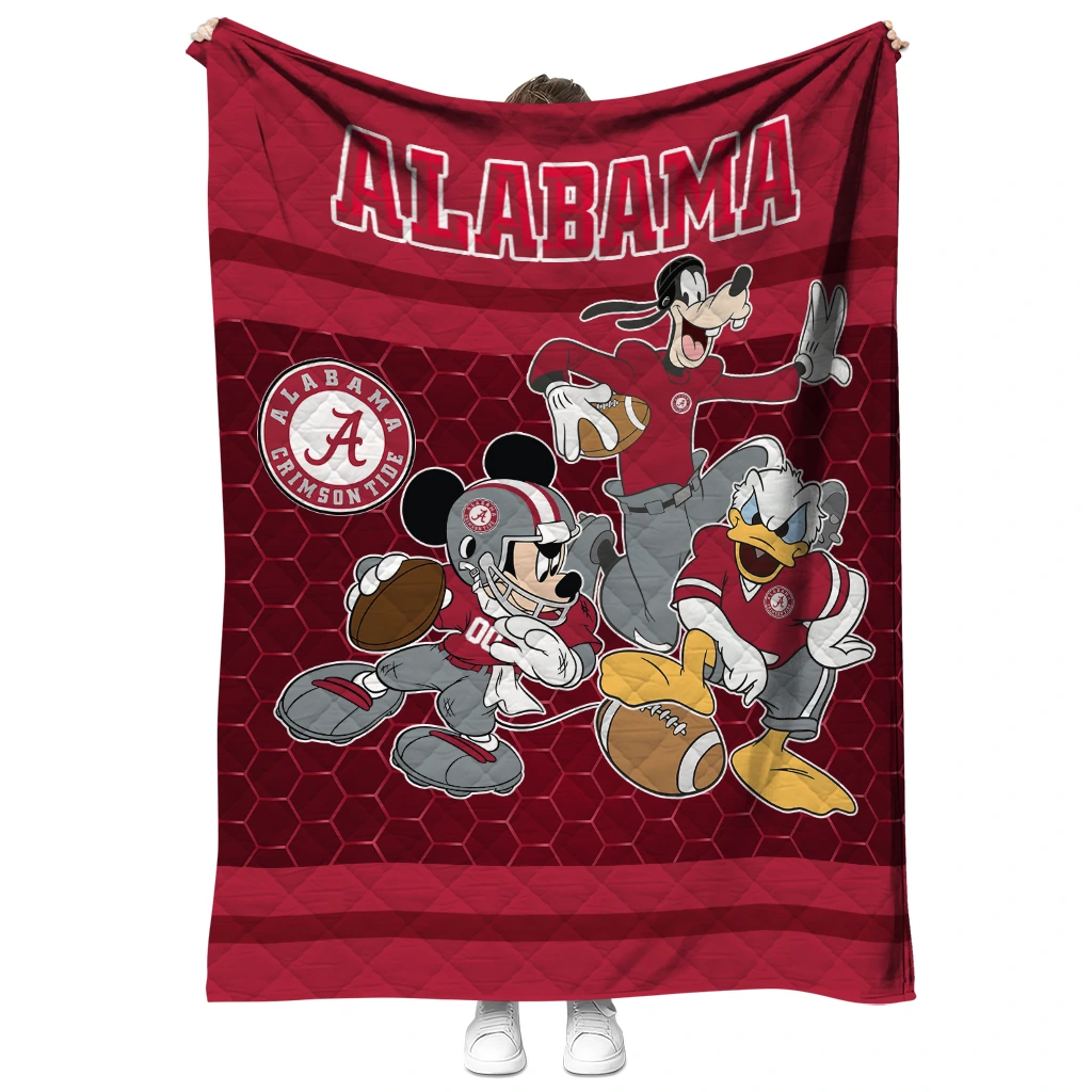 The Alabama Crimson Tide Disney Football Crimson Quilt Blanket is more than a blanket—it’s everyday comfort, thoughtfully made. Crafted from premium quilting fabric with a soft microfiber touch, it offers a smooth hand-feel and lasting coziness. Layered quilting with a cotton-filled core provides adaptable warmth across seasons while maintaining a clean, tailored look on your bed or sofa.