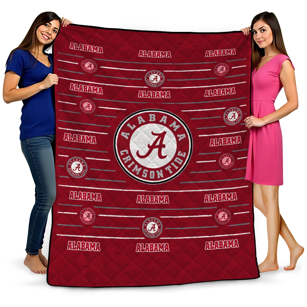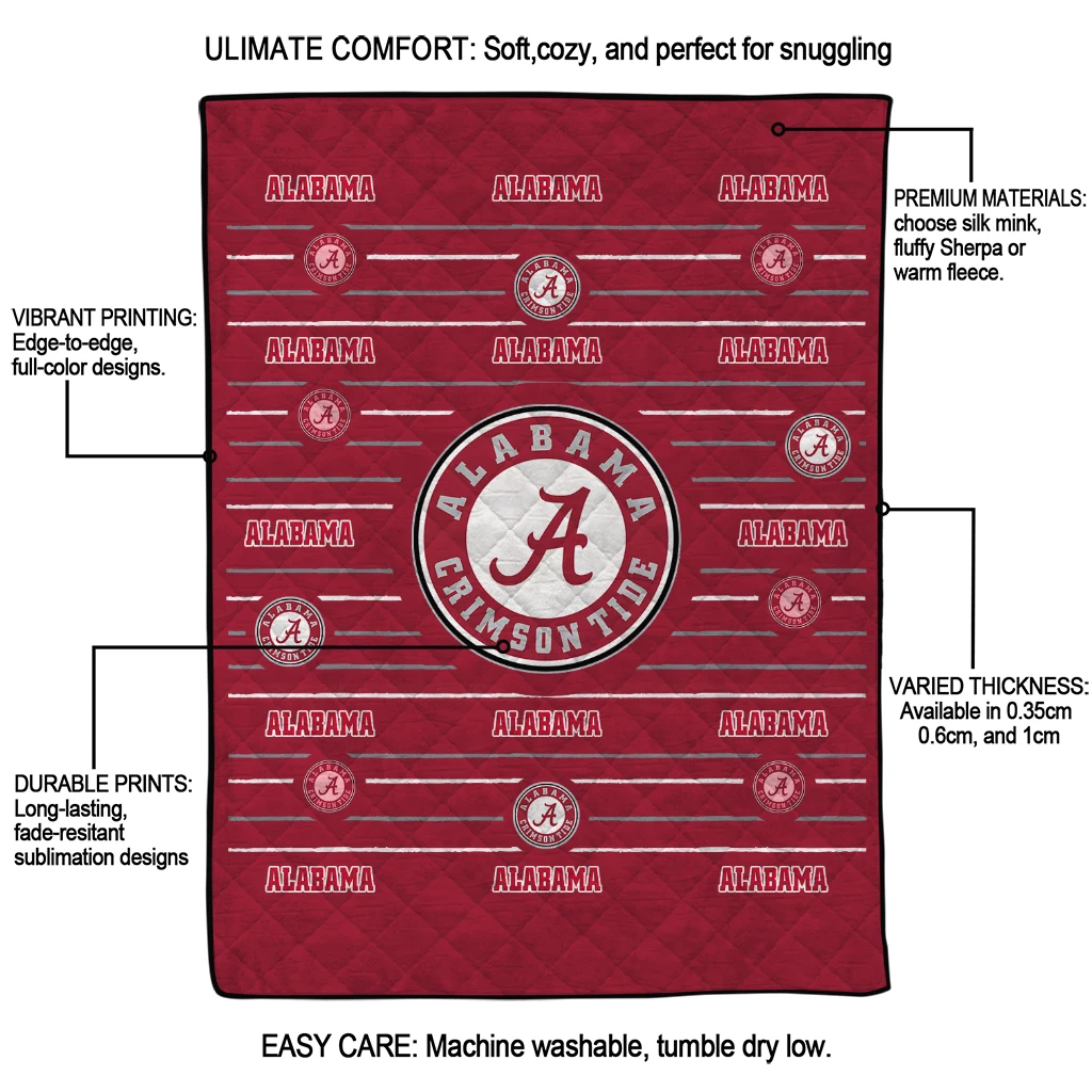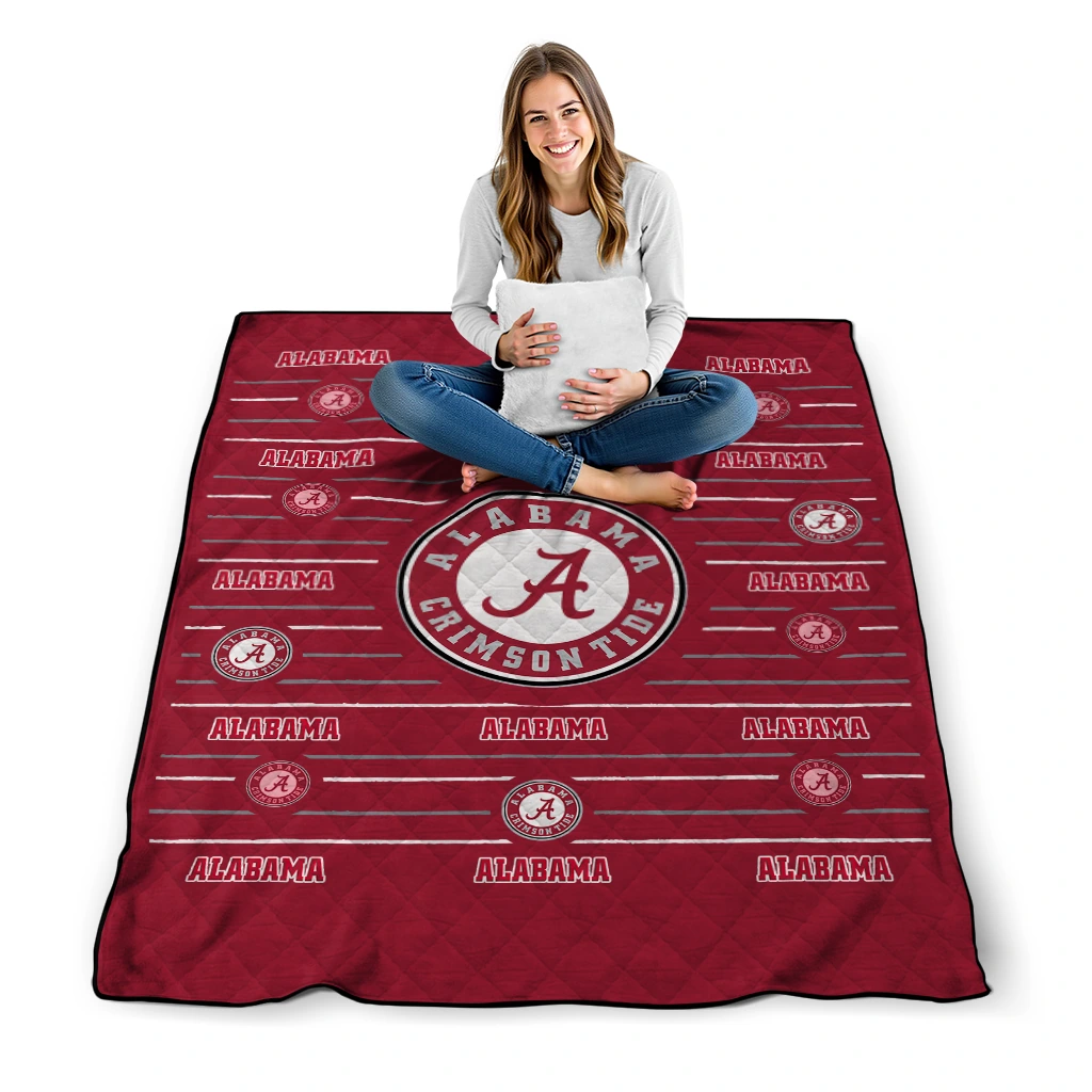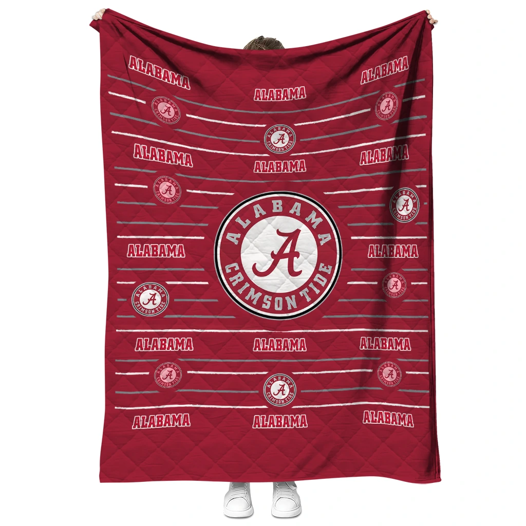 Alabama Crimson Tide Handdrawn Stripes Crimson Quilt Blanket