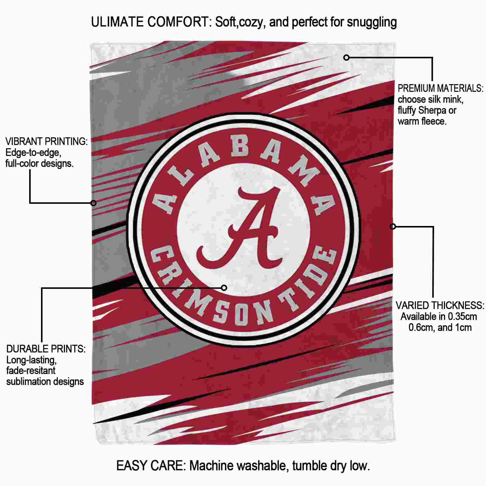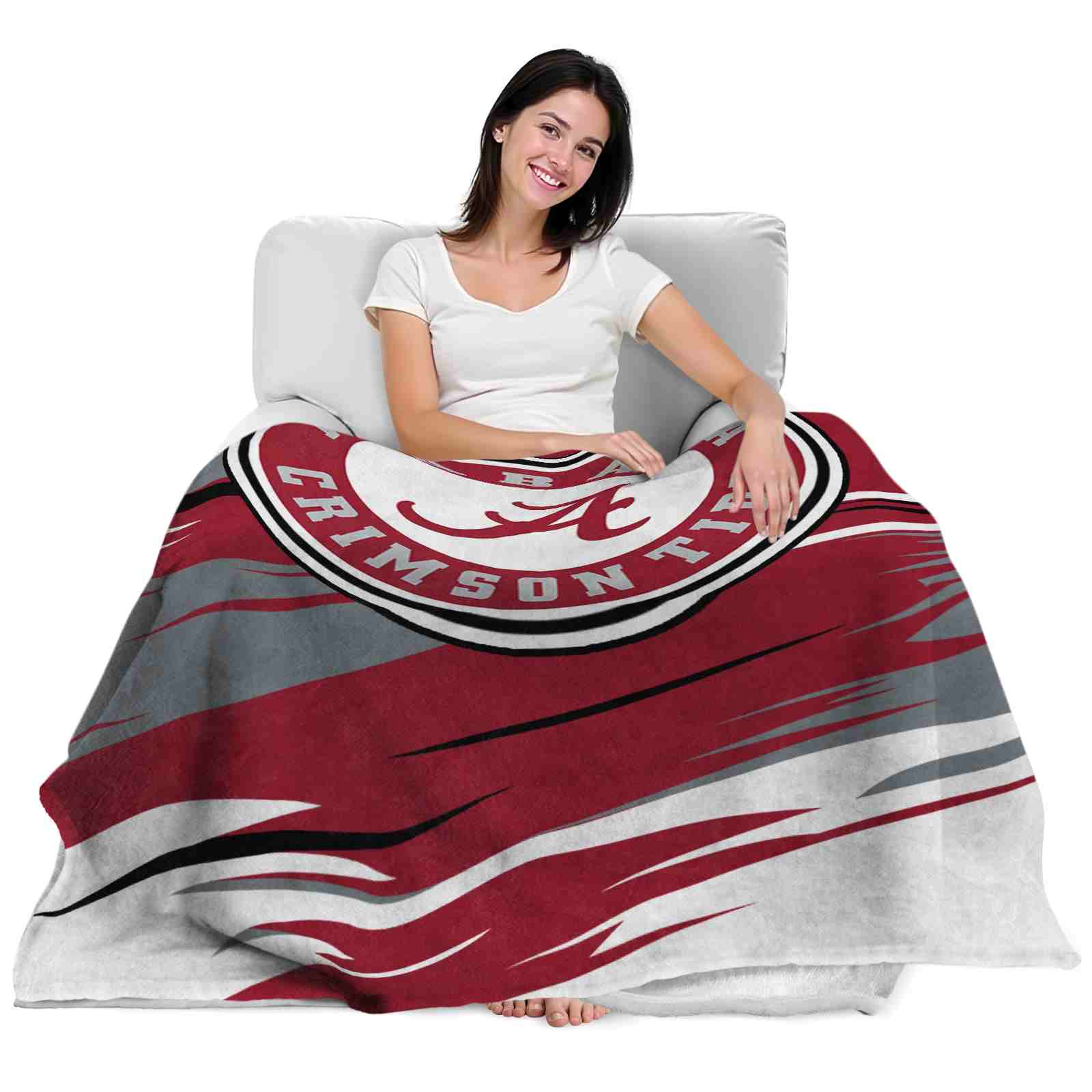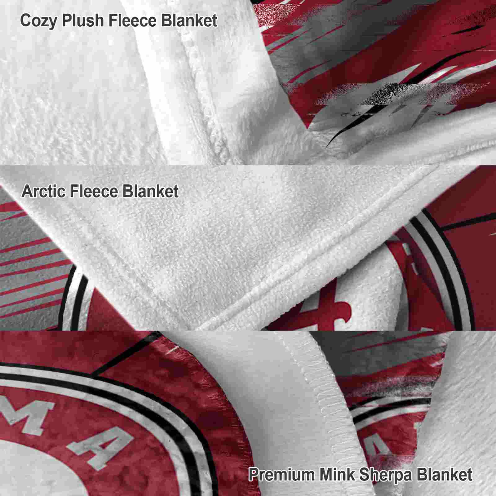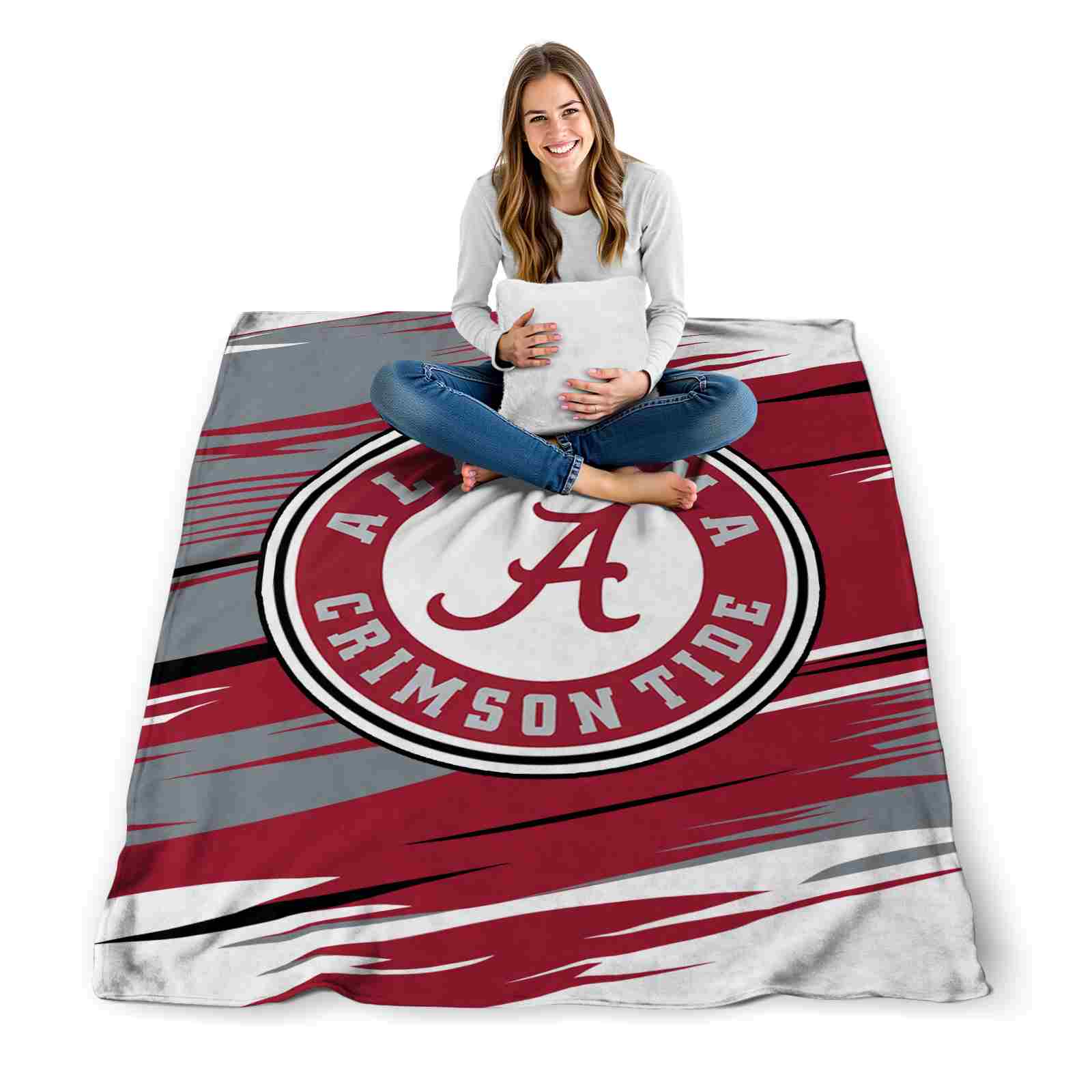 Without a doubt, the Alabama Crimson Tide Paint Streaks Crimson White Blanket from Alabama Crimson Tide Blankets collection is offering true fans a chance to showcase passion in a cool way. Personalize it with your favorite team's logo or a meaningful name to make it uniquely yours. Isn't that great? The full-color print ensures vibrant, edge-to-edge designs, bringing your sports enthusiasm to life!