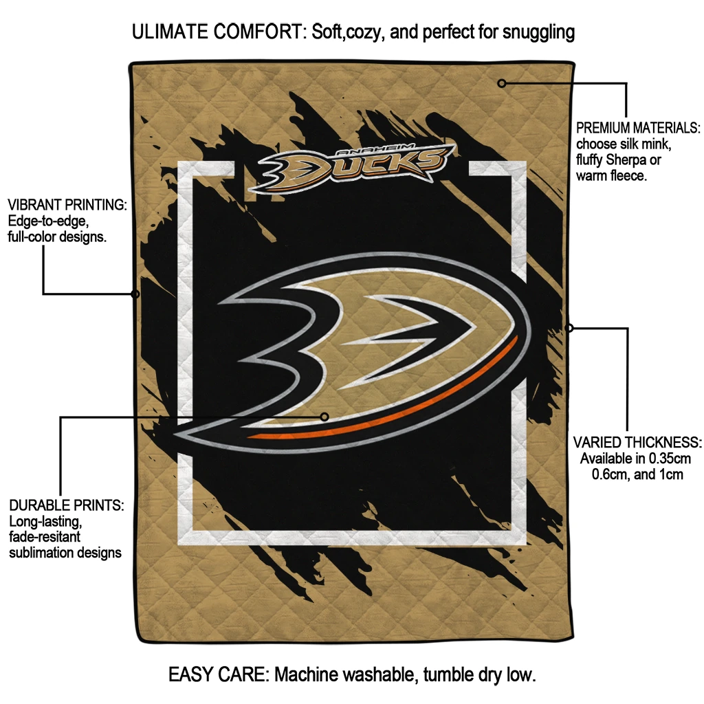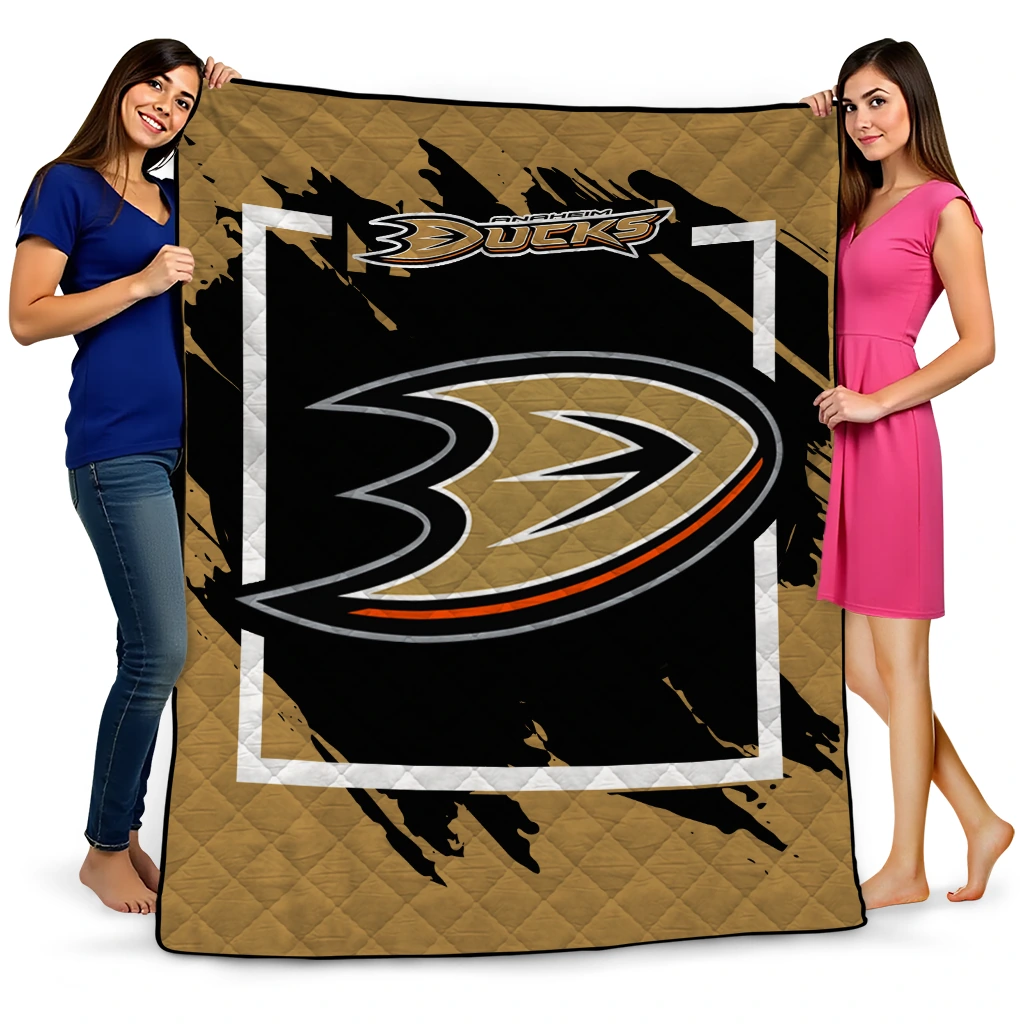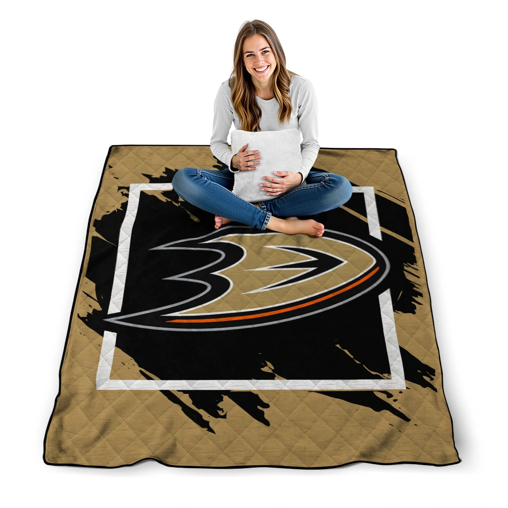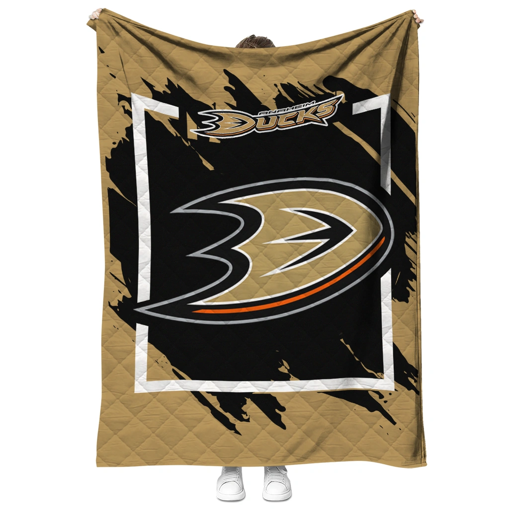 Anaheim Ducks Block Border Gold Quilt Blanket