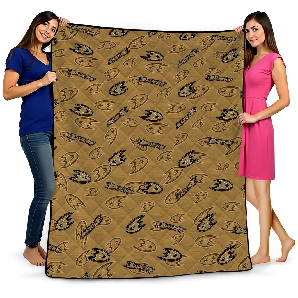 Wrap yourself in warmth and pride with the Anaheim Ducks Solid Classic Gold Quilt Blanket from the Anaheim Ducks Blankets collection at Yes That Blanket. Made from 100% premium quilting-weight polyester blended with a touch of microfiber, this quilt offers a smooth, soft finish you’ll love. Choose between two quilting styles—Stipple or Diagonal—and enjoy the comfort of a cotton-filled layer inside that adds extra coziness for every season. The border is available in classic black or white, giving your design a clean, timeless edge.