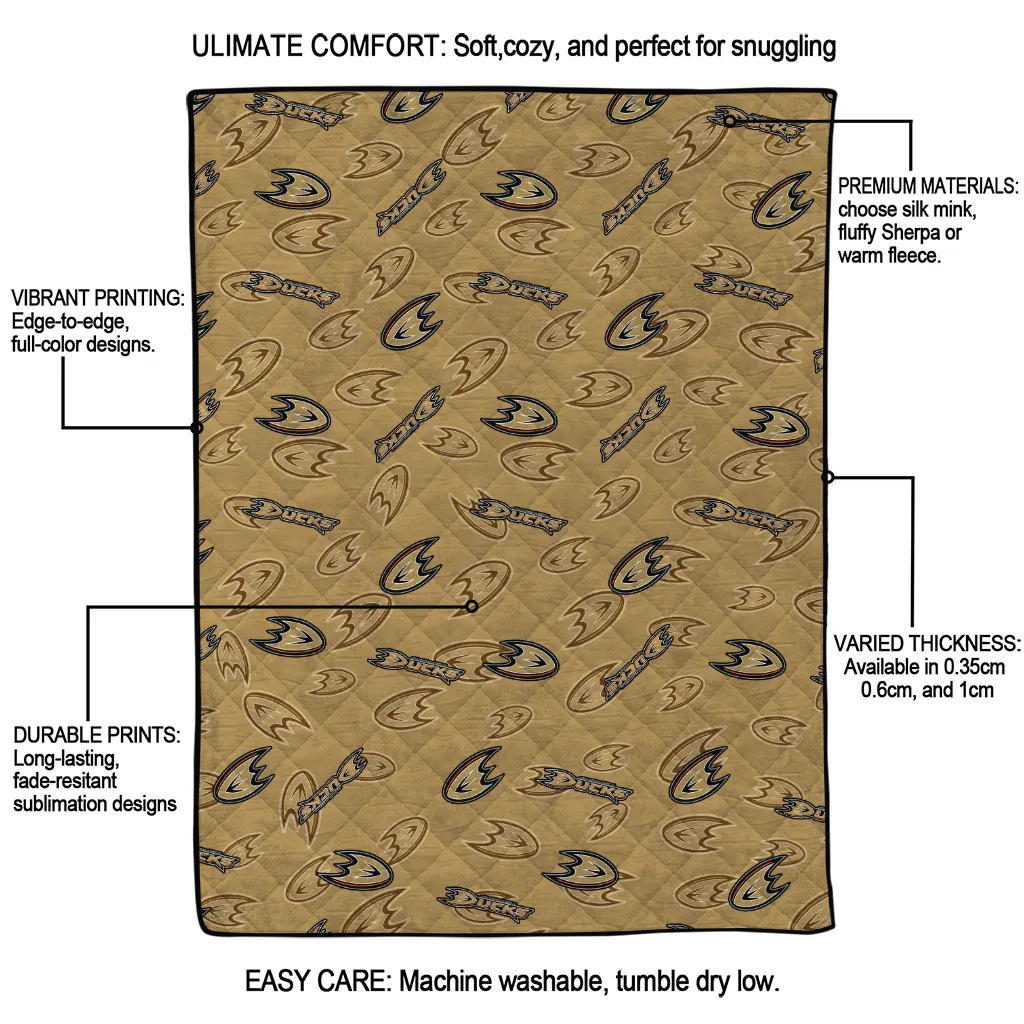 The Anaheim Ducks Solid Classic Gold Quilt Blanket is more than a blanket—it’s everyday comfort, thoughtfully made. Crafted from premium quilting fabric with a soft microfiber touch, it offers a smooth hand-feel and lasting coziness. Layered quilting with a cotton-filled core provides adaptable warmth across seasons while maintaining a clean, tailored look on your bed or sofa.