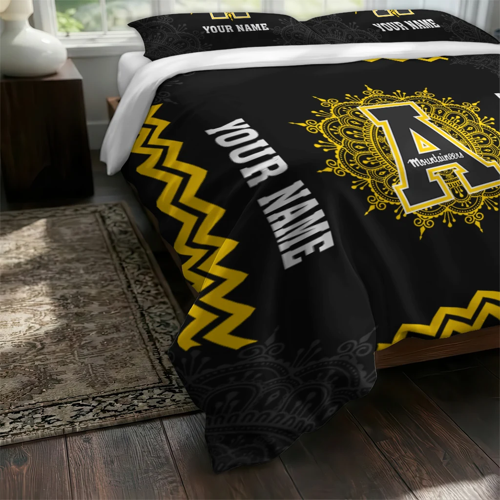 Appalachian State Mountaineers Bedding Set – Customized Mandala Lacework Black Yellow