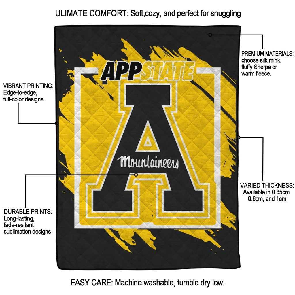 Appalachian State Mountaineers Block Border Black Quilt Blanket
