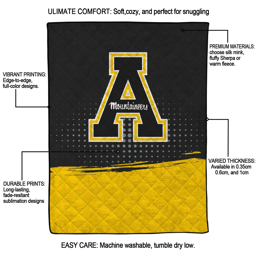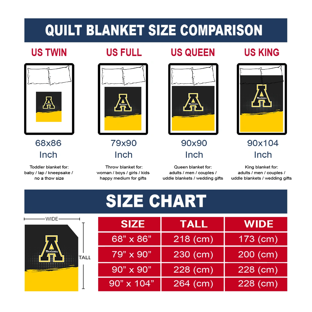 Wrap yourself in warmth and pride with the Appalachian State Mountaineers Dot Illusion Black Quilt Blanket from the Appalachian State Mountaineers Blankets collection at Yes That Blanket. Made from 100% premium quilting-weight polyester blended with a touch of microfiber, this quilt offers a smooth, soft finish you’ll love. Choose between two quilting styles—Stipple or Diagonal—and enjoy the comfort of a cotton-filled layer inside that adds extra coziness for every season. The border is available in classic black or white, giving your design a clean, timeless edge.