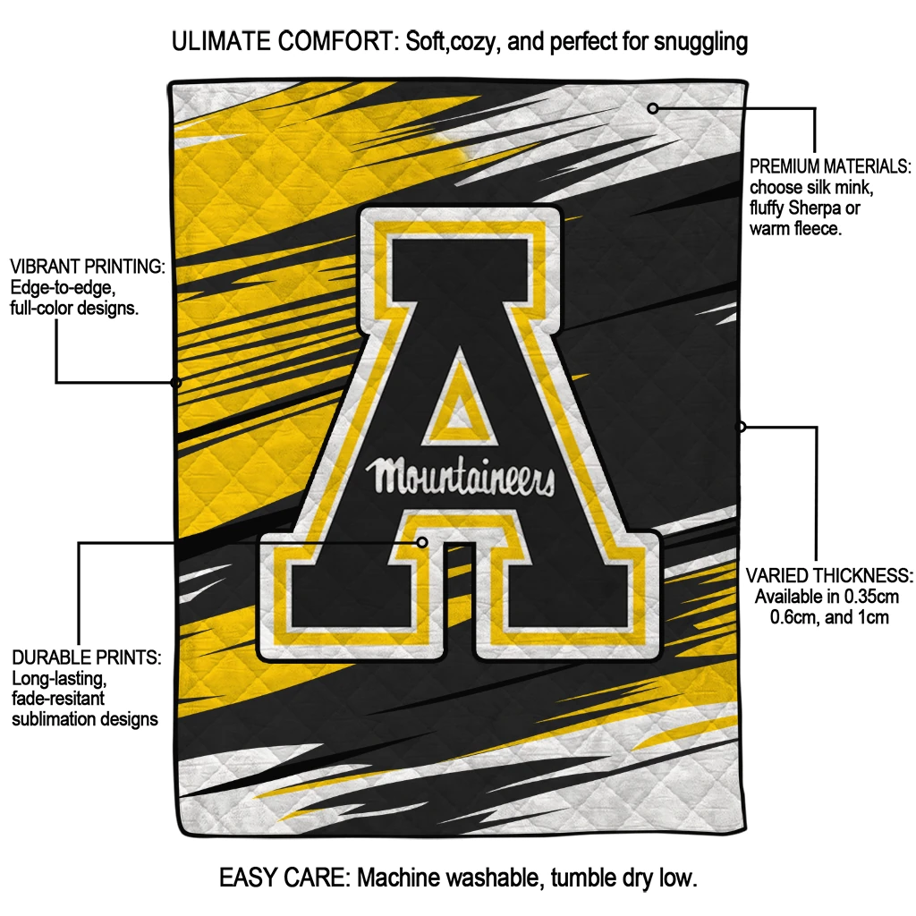 Appalachian State Mountaineers Wild Lines Black White Quilt Blanket