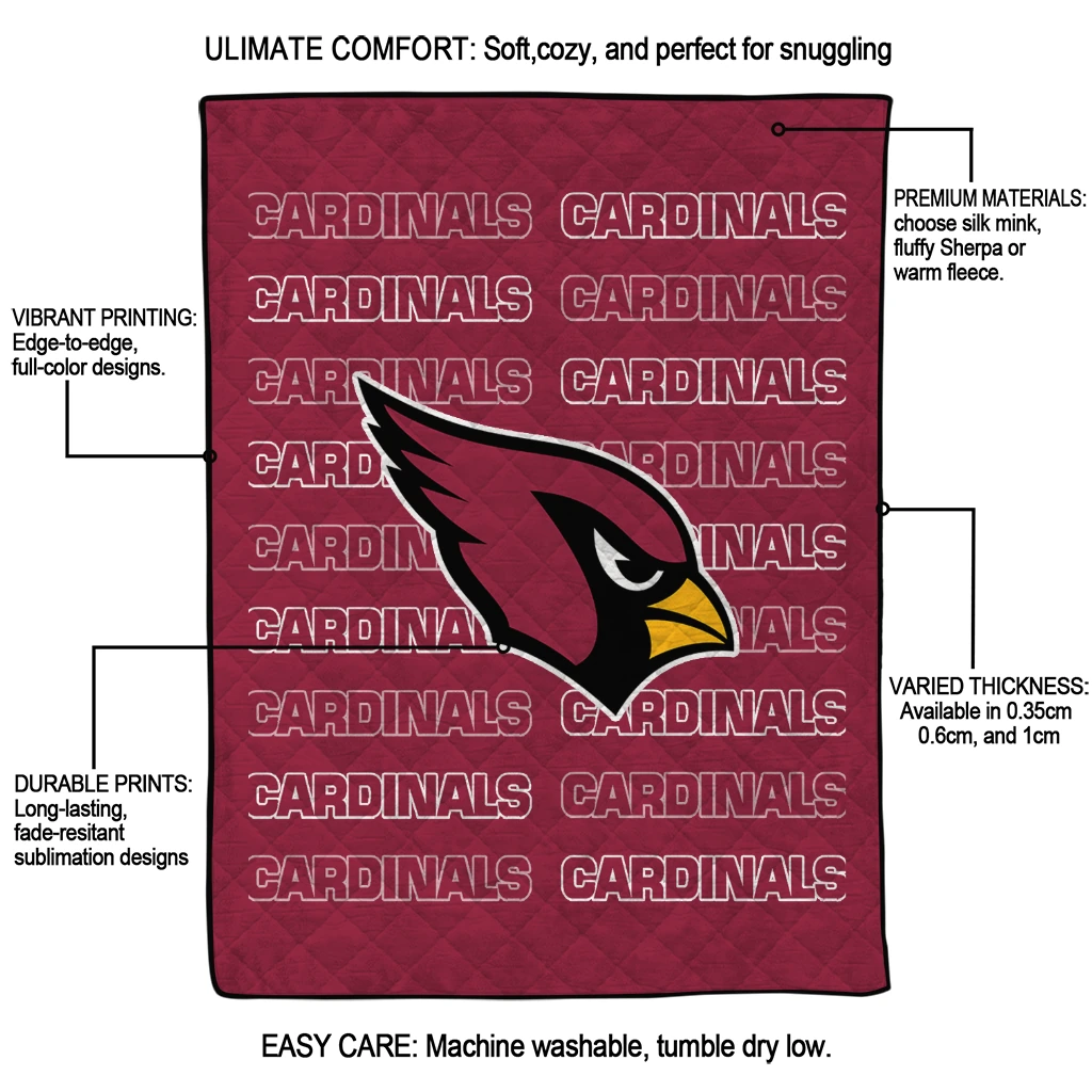The Arizona Cardinals Bold Red Quilt Blanket is more than a blanket—it’s everyday comfort, thoughtfully made. Crafted from premium quilting fabric with a soft microfiber touch, it offers a smooth hand-feel and lasting coziness. Layered quilting with a cotton-filled core provides adaptable warmth across seasons while maintaining a clean, tailored look on your bed or sofa.