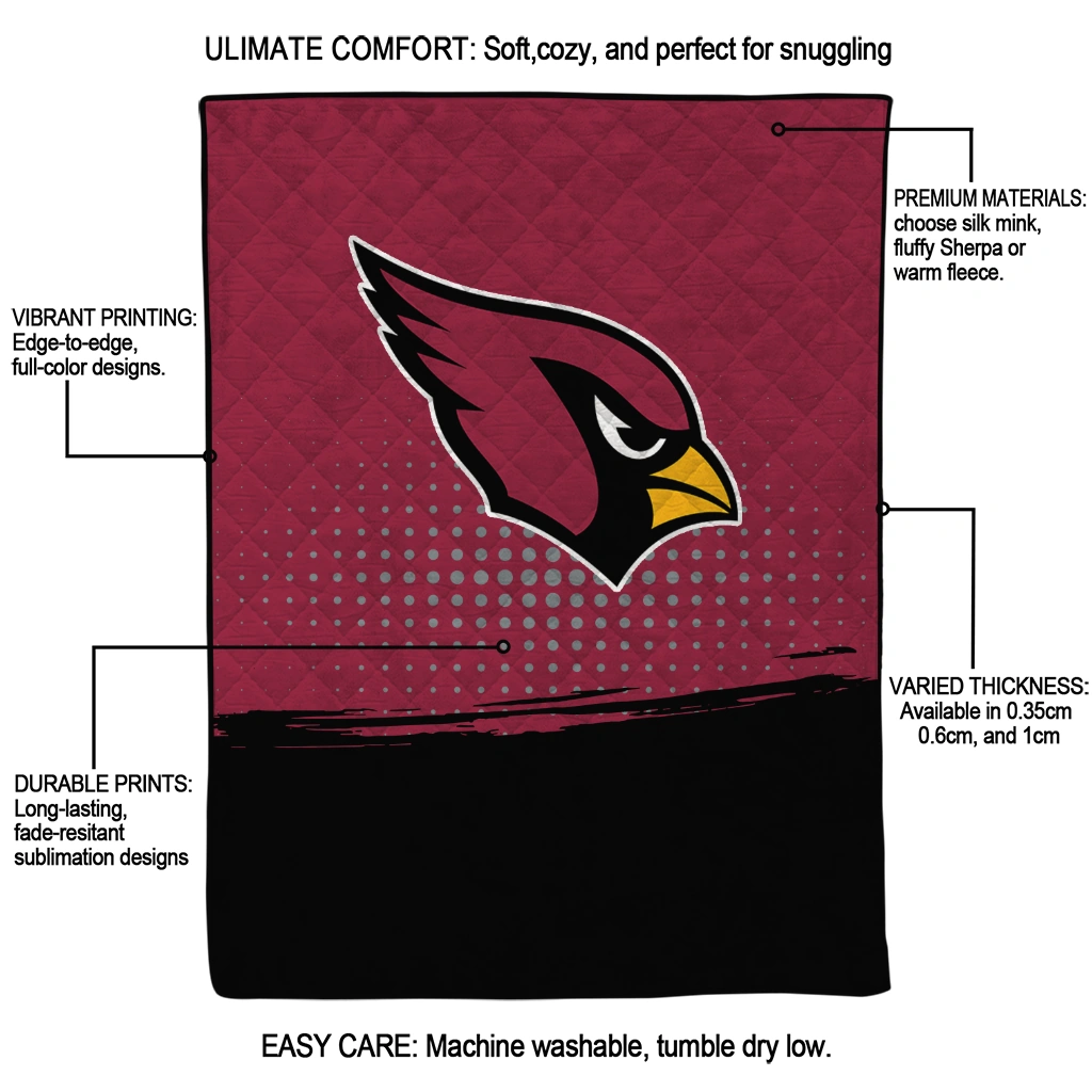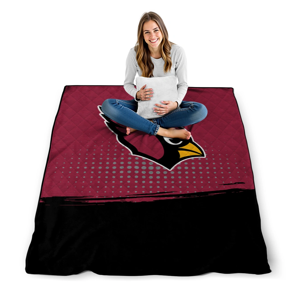 Wrap yourself in warmth and pride with the Arizona Cardinals Dot Illusion Red Quilt Blanket from the Arizona Cardinals Blankets collection at Yes That Blanket. Made from 100% premium quilting-weight polyester blended with a touch of microfiber, this quilt offers a smooth, soft finish you’ll love. Choose between two quilting styles—Stipple or Diagonal—and enjoy the comfort of a cotton-filled layer inside that adds extra coziness for every season. The border is available in classic black or white, giving your design a clean, timeless edge.