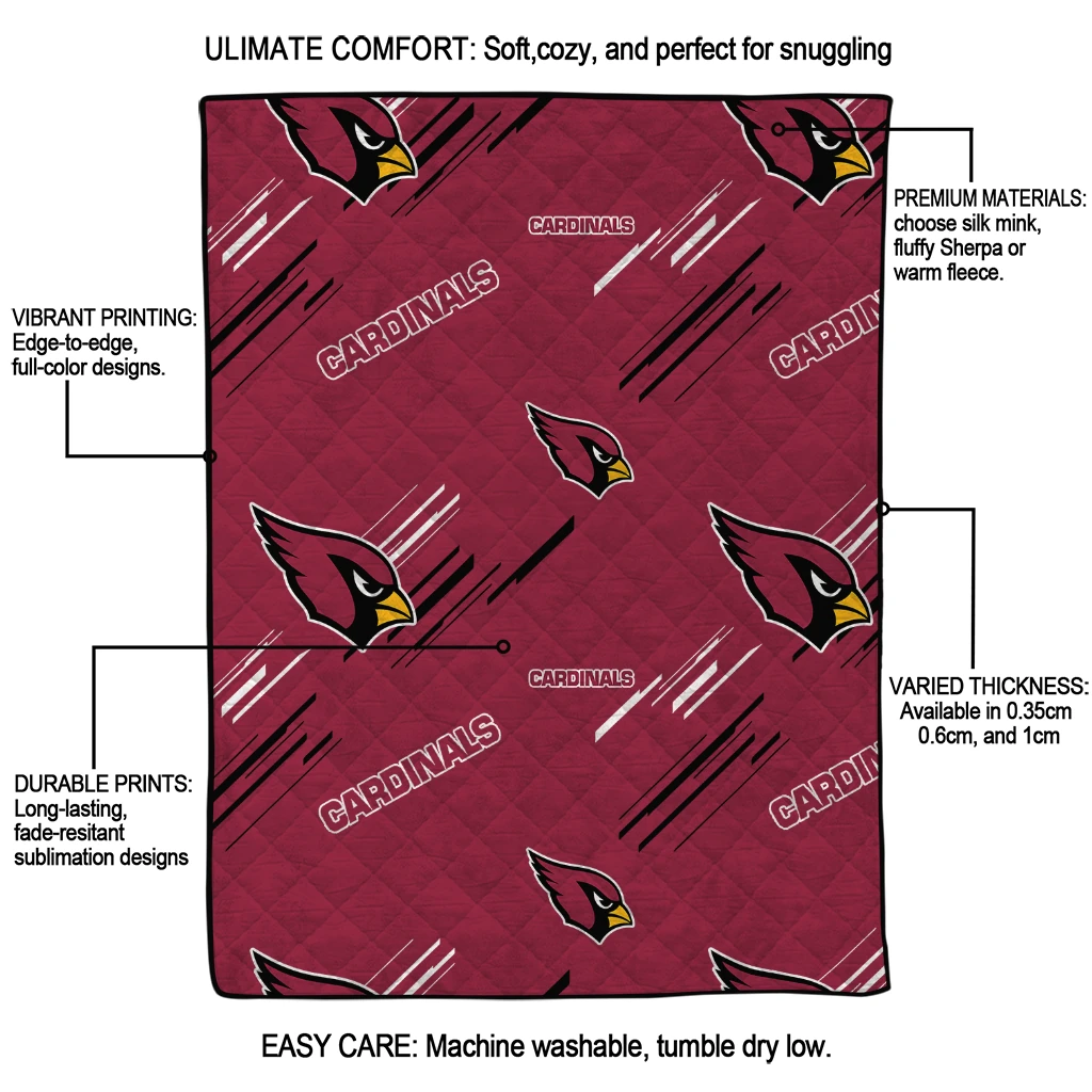 The Arizona Cardinals Sketch Lines Red Quilt Blanket is more than a blanket—it’s everyday comfort, thoughtfully made. Crafted from premium quilting fabric with a soft microfiber touch, it offers a smooth hand-feel and lasting coziness. Layered quilting with a cotton-filled core provides adaptable warmth across seasons while maintaining a clean, tailored look on your bed or sofa.