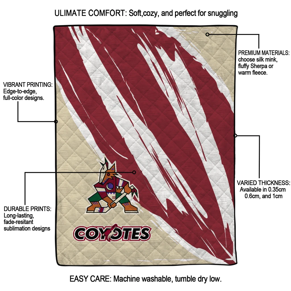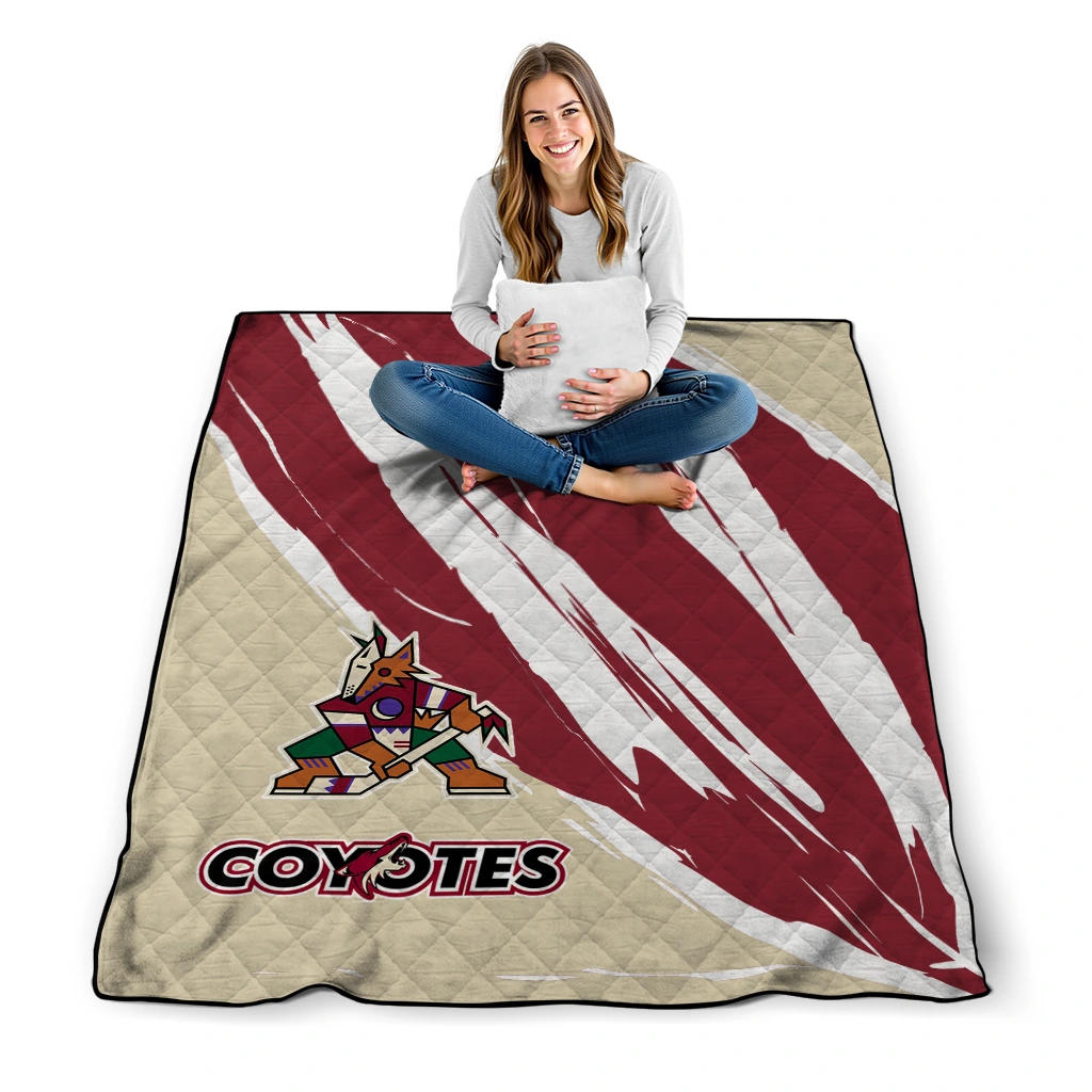 The Arizona Coyotes Stroke Art Red White Quilt Blanket is more than a blanket—it’s everyday comfort, thoughtfully made. Crafted from premium quilting fabric with a soft microfiber touch, it offers a smooth hand-feel and lasting coziness. Layered quilting with a cotton-filled core provides adaptable warmth across seasons while maintaining a clean, tailored look on your bed or sofa.
