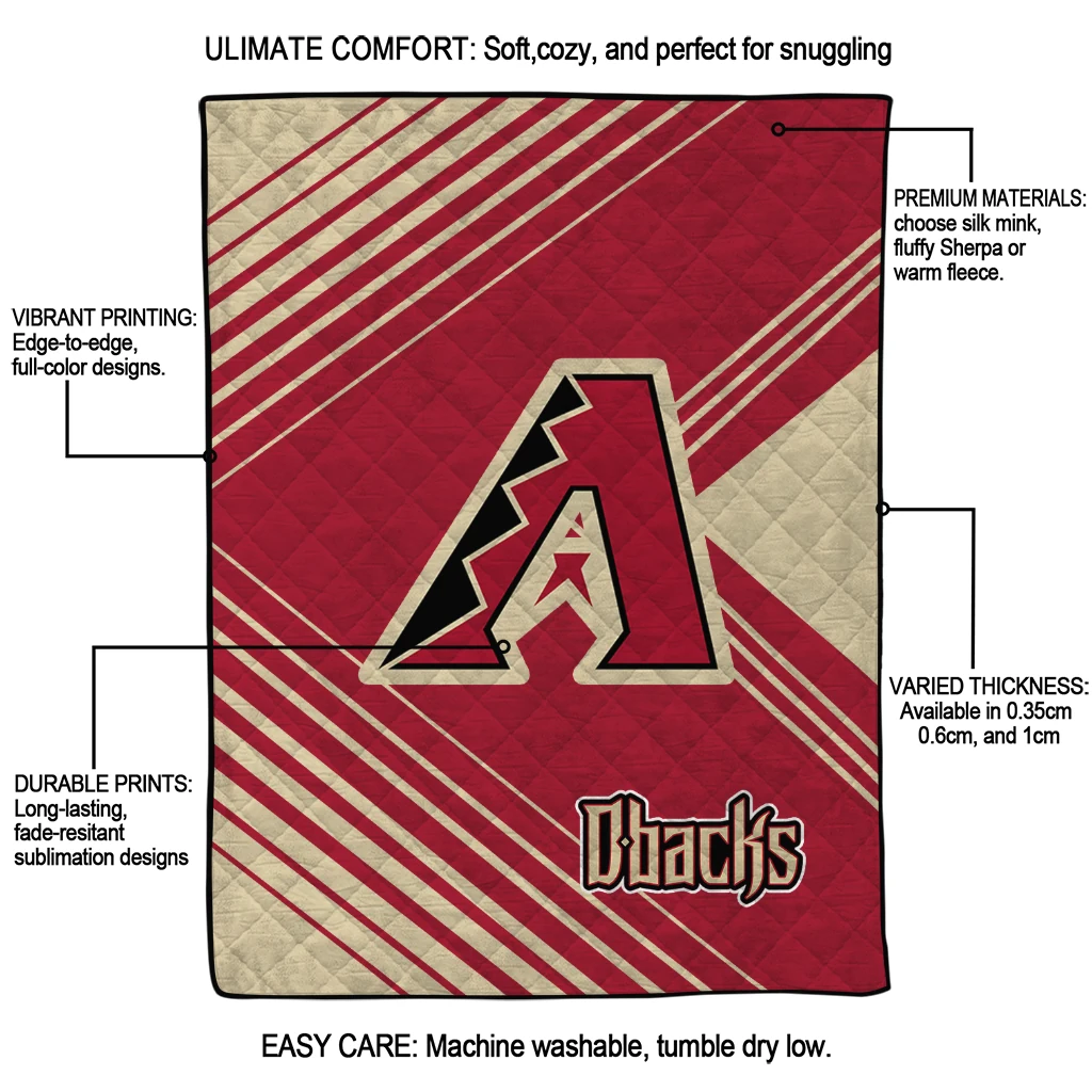 Wrap yourself in warmth and pride with the Arizona Diamondbacks Arrow Layers Red Quilt Blanket from the Arizona Diamondbacks Blankets collection at Yes That Blanket. Made from 100% premium quilting-weight polyester blended with a touch of microfiber, this quilt offers a smooth, soft finish you’ll love. Choose between two quilting styles—Stipple or Diagonal—and enjoy the comfort of a cotton-filled layer inside that adds extra coziness for every season. The border is available in classic black or white, giving your design a clean, timeless edge.