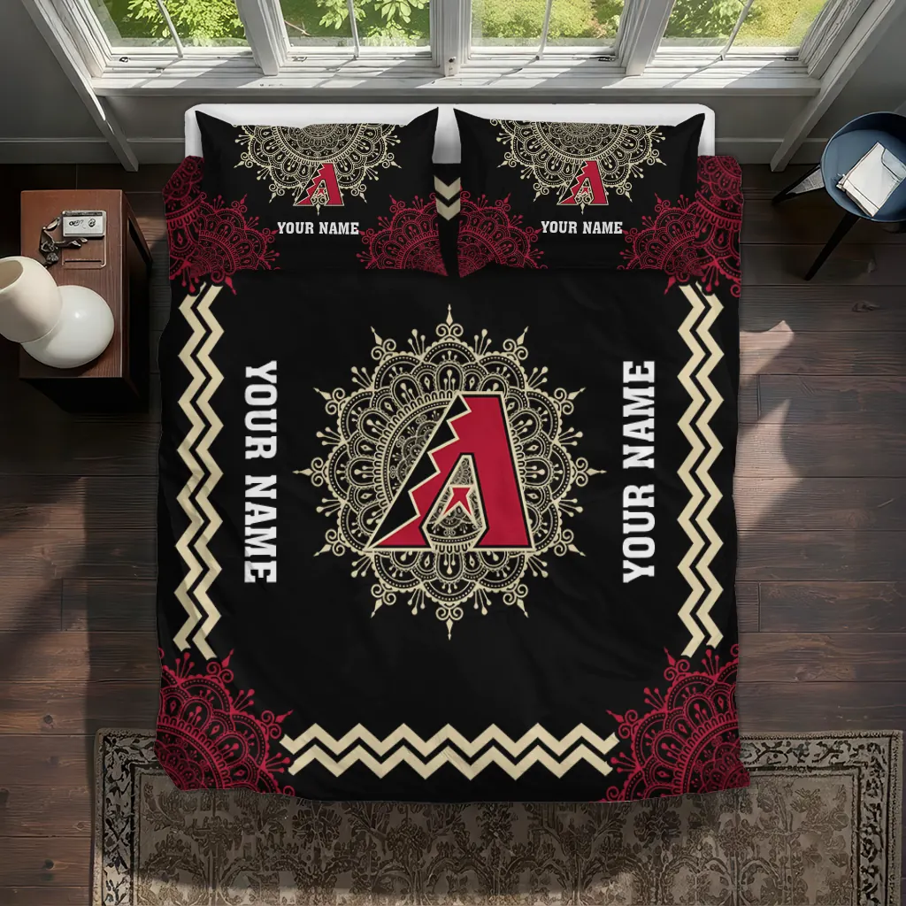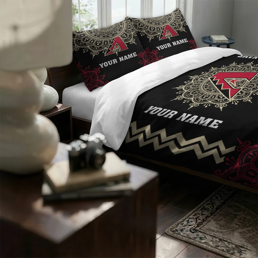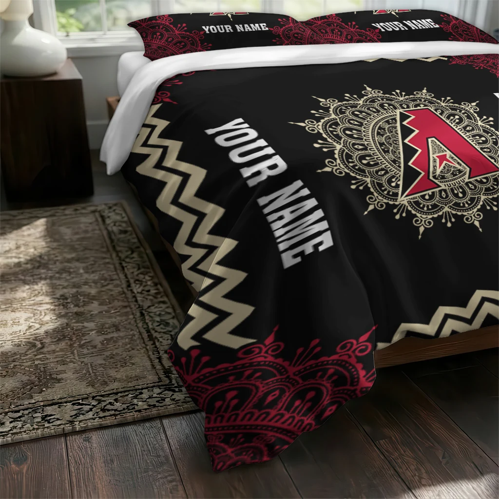 Arizona Diamondbacks Bedding Set – Personalized Mandala Lacework Black Red