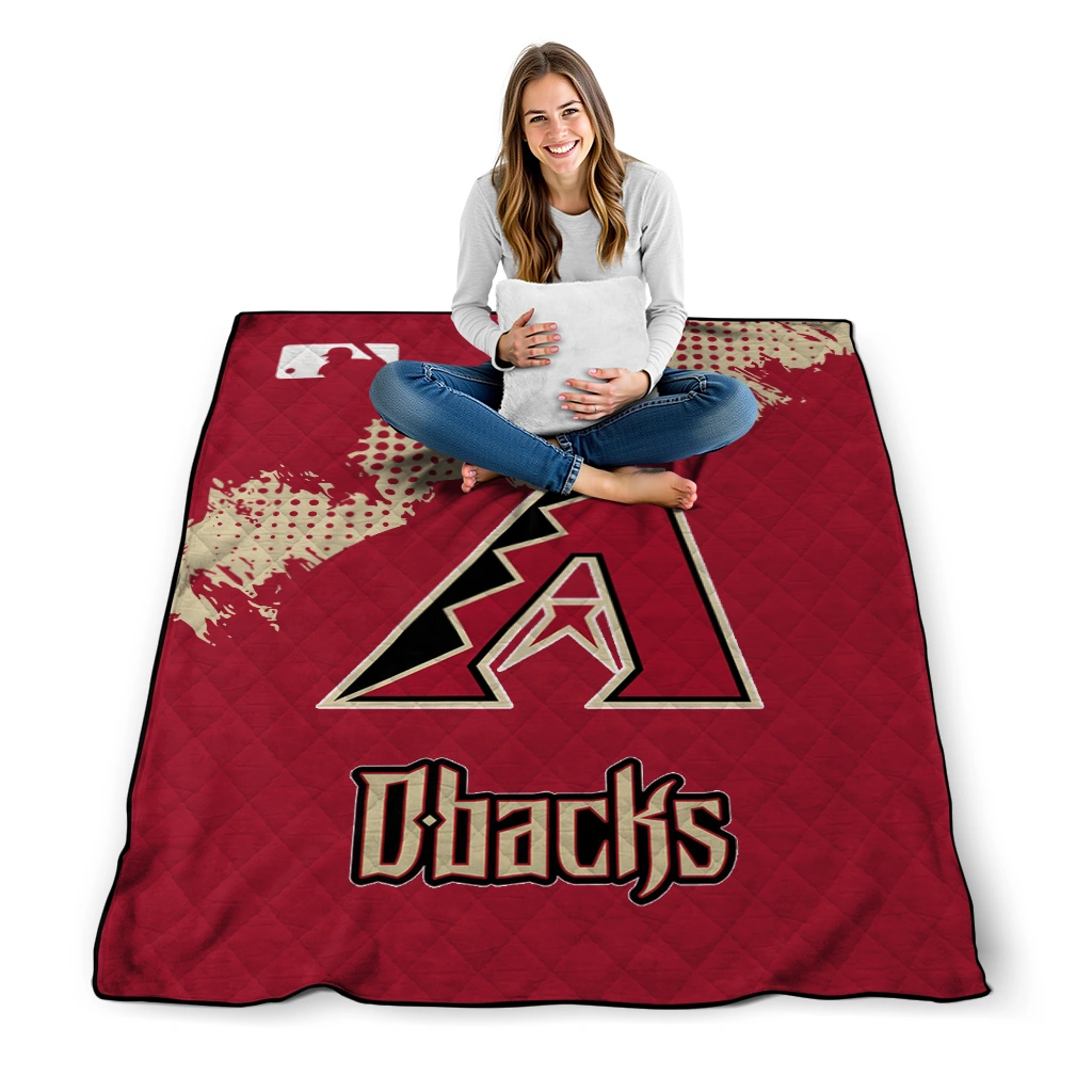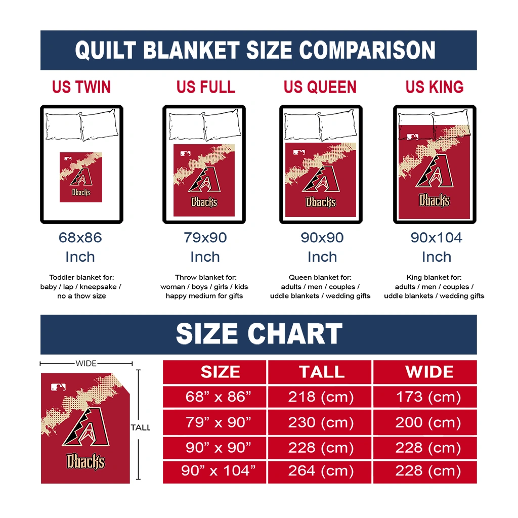 Wrap yourself in warmth and pride with the Arizona Diamondbacks League Patch Red Quilt Blanket from the Arizona Diamondbacks Blankets collection at Yes That Blanket. Made from 100% premium quilting-weight polyester blended with a touch of microfiber, this quilt offers a smooth, soft finish you’ll love. Choose between two quilting styles—Stipple or Diagonal—and enjoy the comfort of a cotton-filled layer inside that adds extra coziness for every season. The border is available in classic black or white, giving your design a clean, timeless edge.