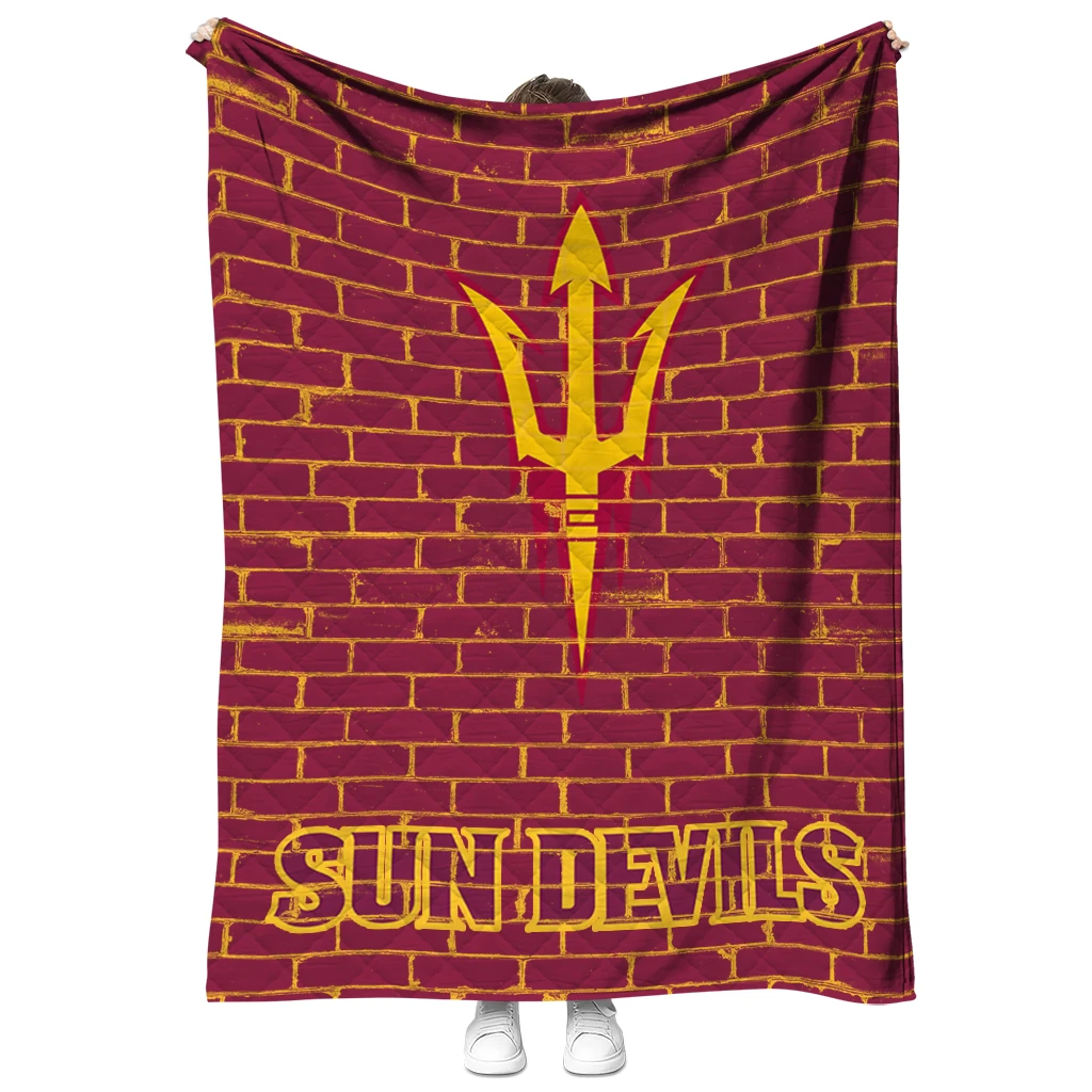Wrap yourself in warmth and pride with the Arizona State Sun Devils Brick Grid Maroon Quilt Blanket from the Arizona State Sun Devils Blankets collection at Yes That Blanket. Made from 100% premium quilting-weight polyester blended with a touch of microfiber, this quilt offers a smooth, soft finish you’ll love. Choose between two quilting styles—Stipple or Diagonal—and enjoy the comfort of a cotton-filled layer inside that adds extra coziness for every season. The border is available in classic black or white, giving your design a clean, timeless edge.