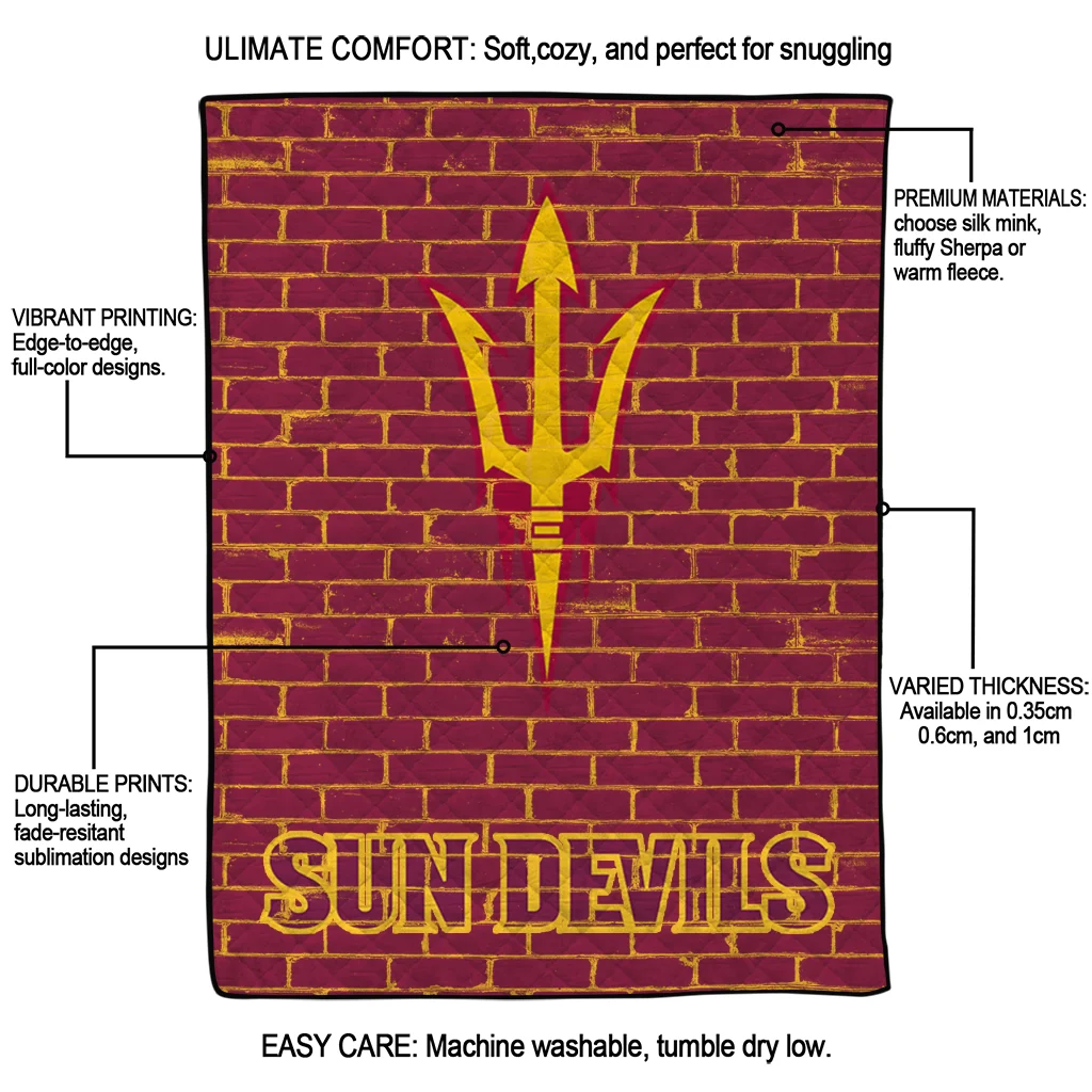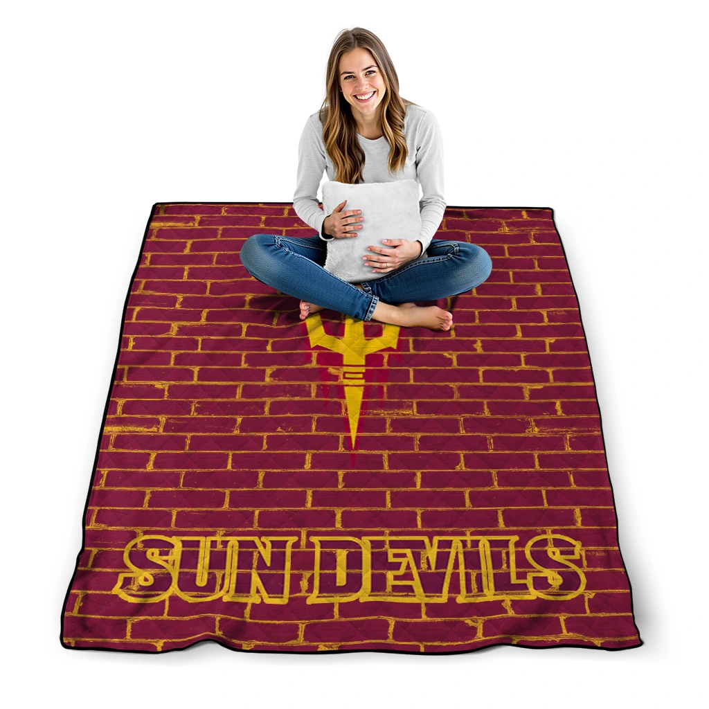 The Arizona State Sun Devils Brick Grid Maroon Quilt Blanket is more than a blanket—it’s everyday comfort, thoughtfully made. Crafted from premium quilting fabric with a soft microfiber touch, it offers a smooth hand-feel and lasting coziness. Layered quilting with a cotton-filled core provides adaptable warmth across seasons while maintaining a clean, tailored look on your bed or sofa.