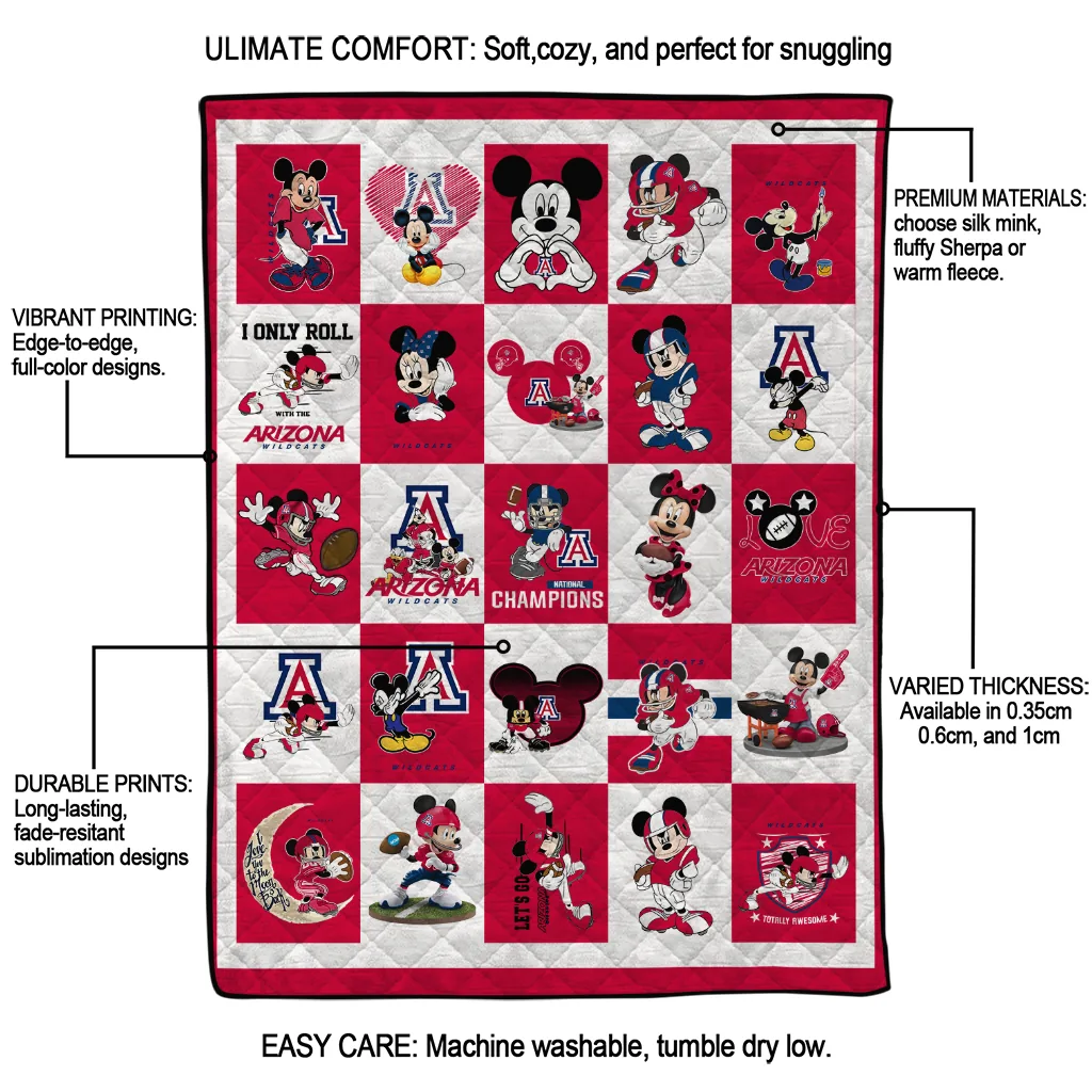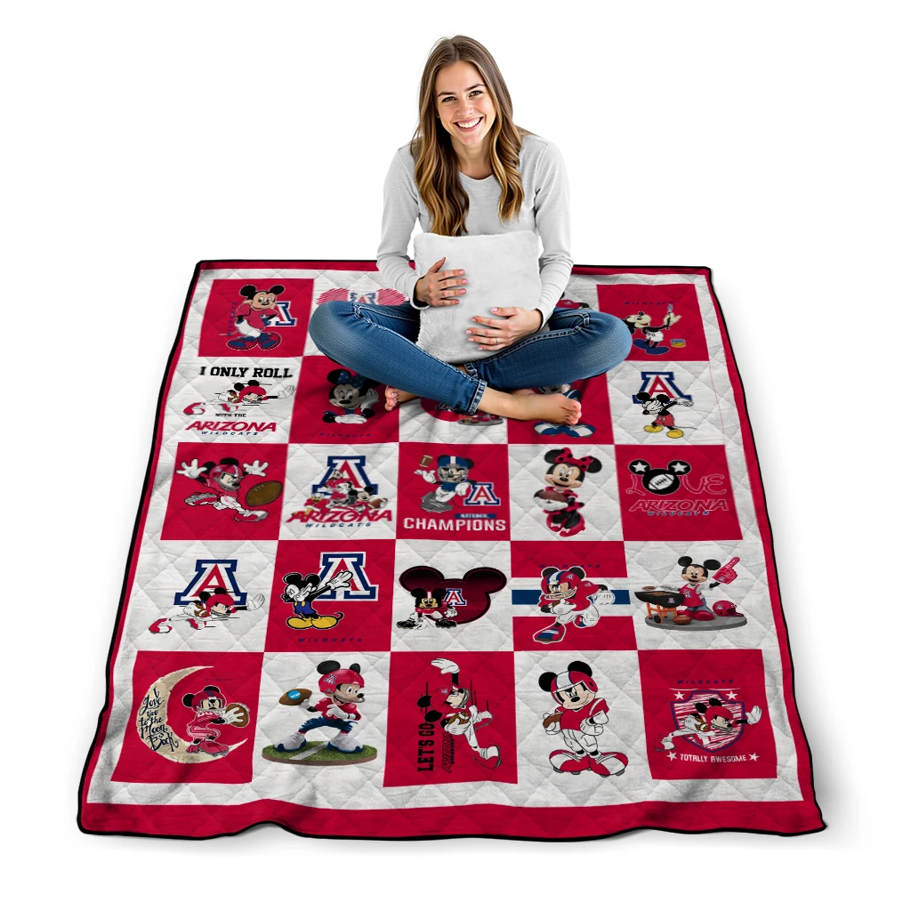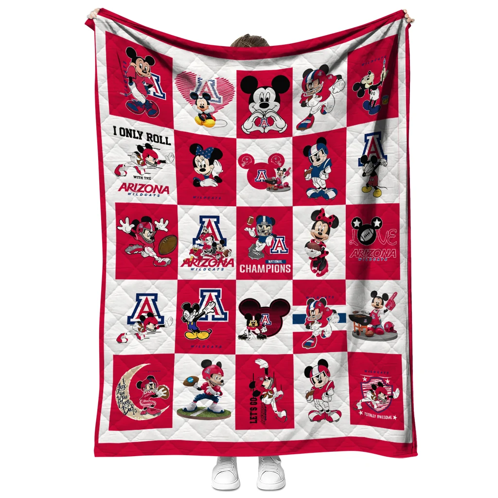 Arizona Wildcats Mickey Mouse Motif Red White Quilt Blanket