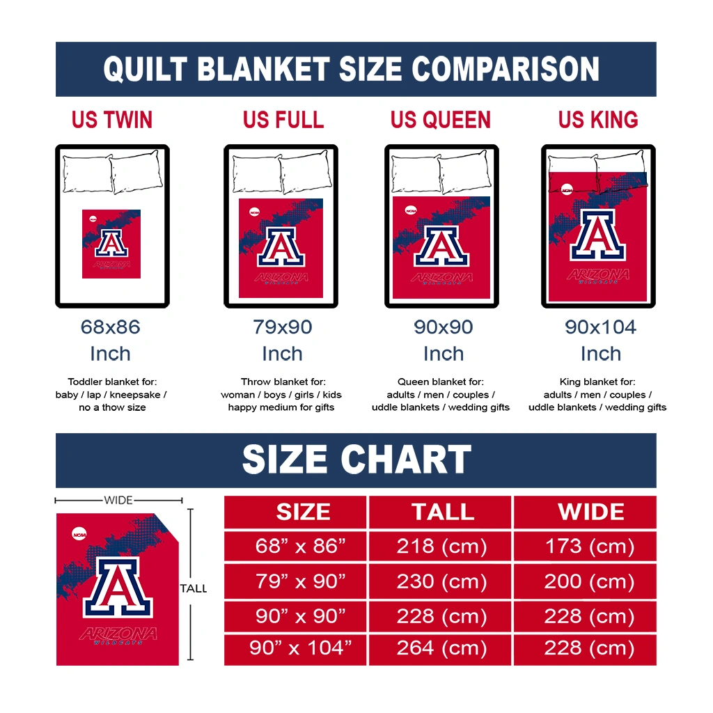 Wrap yourself in warmth and pride with the Arizona Wildcats Paint Trail Red Quilt Blanket from the Arizona Wildcats Blankets collection at Yes That Blanket. Made from 100% premium quilting-weight polyester blended with a touch of microfiber, this quilt offers a smooth, soft finish you’ll love. Choose between two quilting styles—Stipple or Diagonal—and enjoy the comfort of a cotton-filled layer inside that adds extra coziness for every season. The border is available in classic black or white, giving your design a clean, timeless edge.