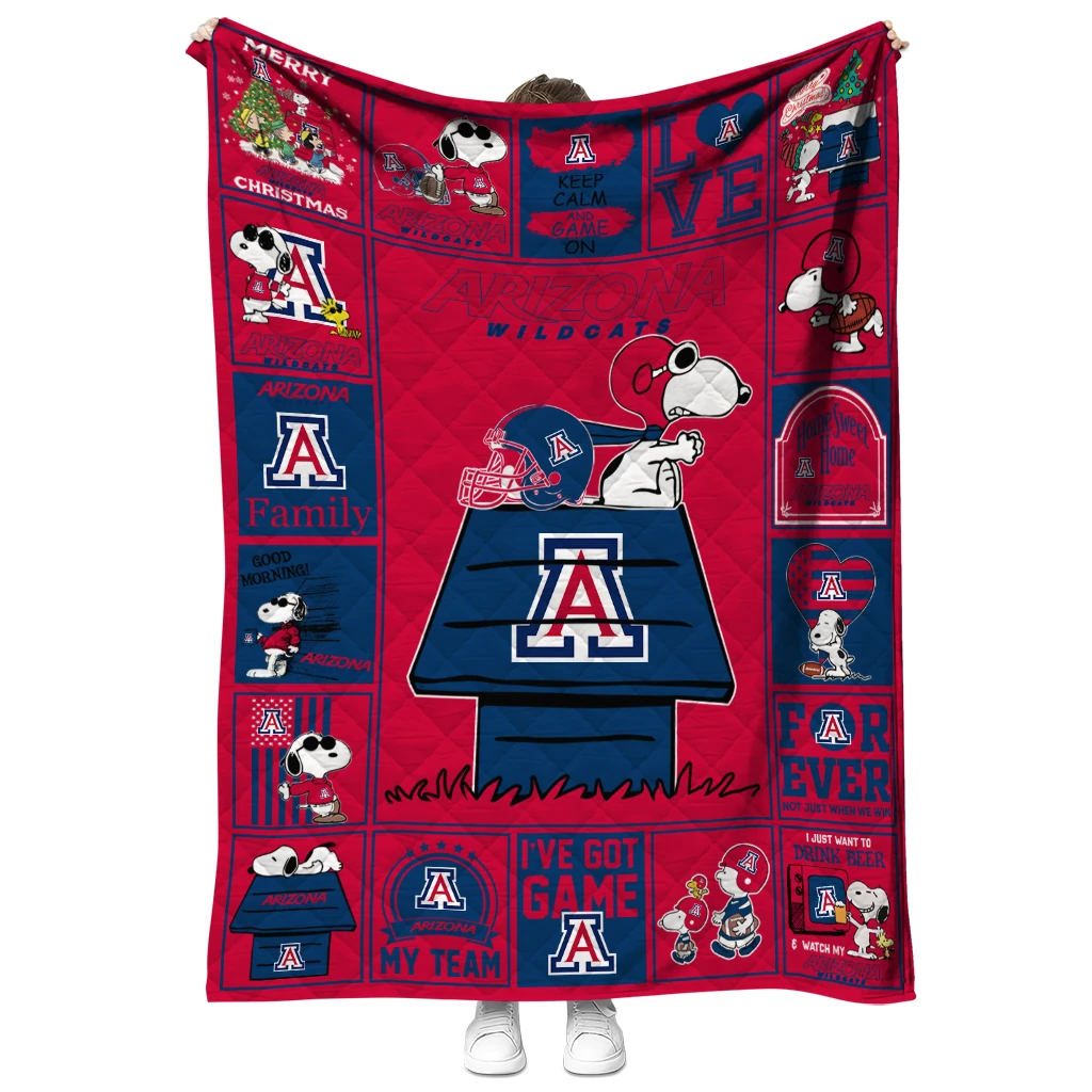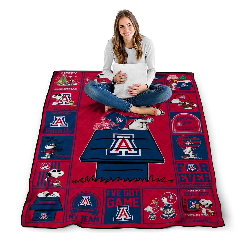 Wrap yourself in warmth and pride with the Arizona Wildcats Snoopy Love Red Quilt Blanket from the Arizona Wildcats Blankets collection at Yes That Blanket. Made from 100% premium quilting-weight polyester blended with a touch of microfiber, this quilt offers a smooth, soft finish you’ll love. Choose between two quilting styles—Stipple or Diagonal—and enjoy the comfort of a cotton-filled layer inside that adds extra coziness for every season. The border is available in classic black or white, giving your design a clean, timeless edge.