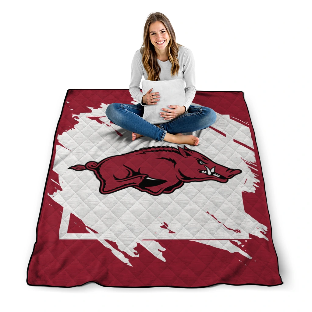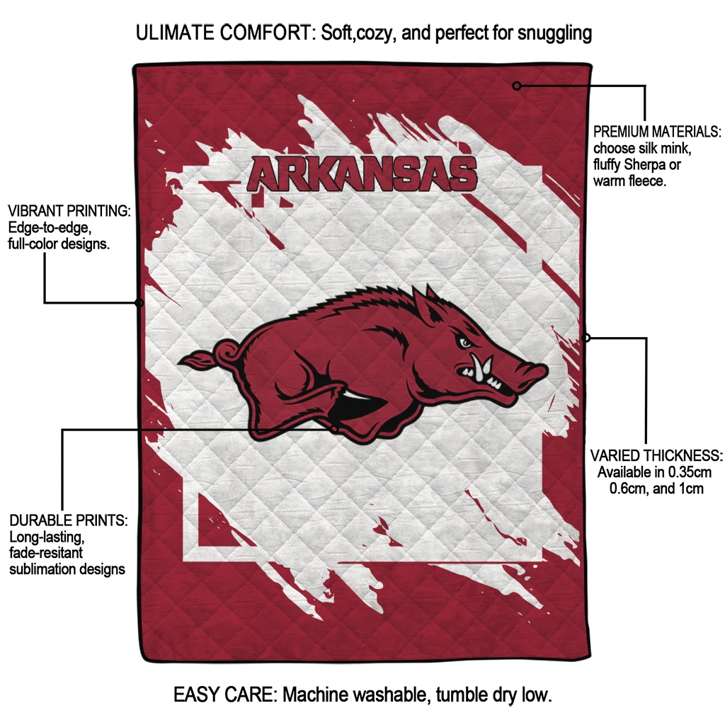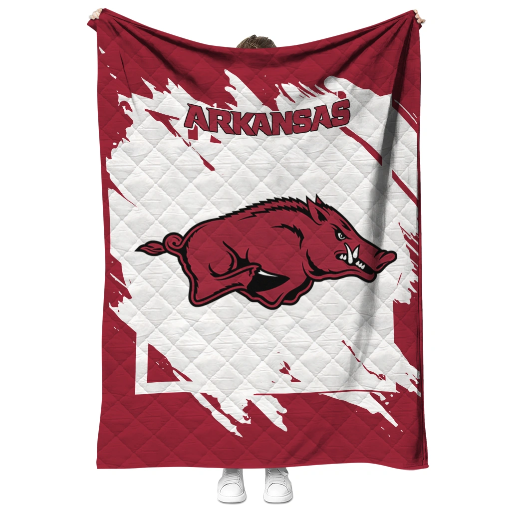 Arkansas Razorbacks Block Border Red Quilt Blanket