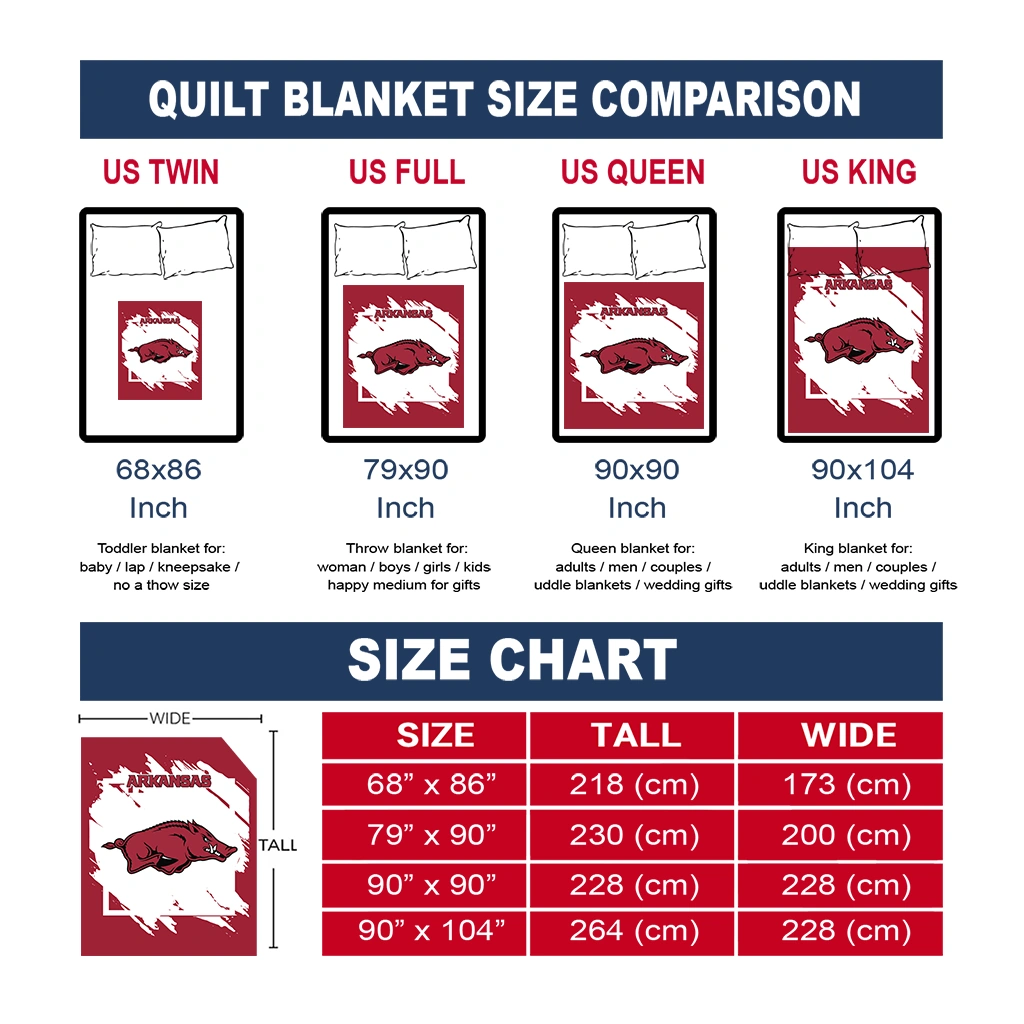 Wrap yourself in warmth and pride with the Arkansas Razorbacks Block Border Red Quilt Blanket from the Arkansas Razorbacks Blankets collection at Yes That Blanket. Made from 100% premium quilting-weight polyester blended with a touch of microfiber, this quilt offers a smooth, soft finish you’ll love. Choose between two quilting styles—Stipple or Diagonal—and enjoy the comfort of a cotton-filled layer inside that adds extra coziness for every season. The border is available in classic black or white, giving your design a clean, timeless edge.