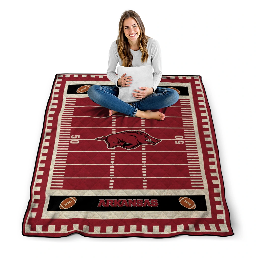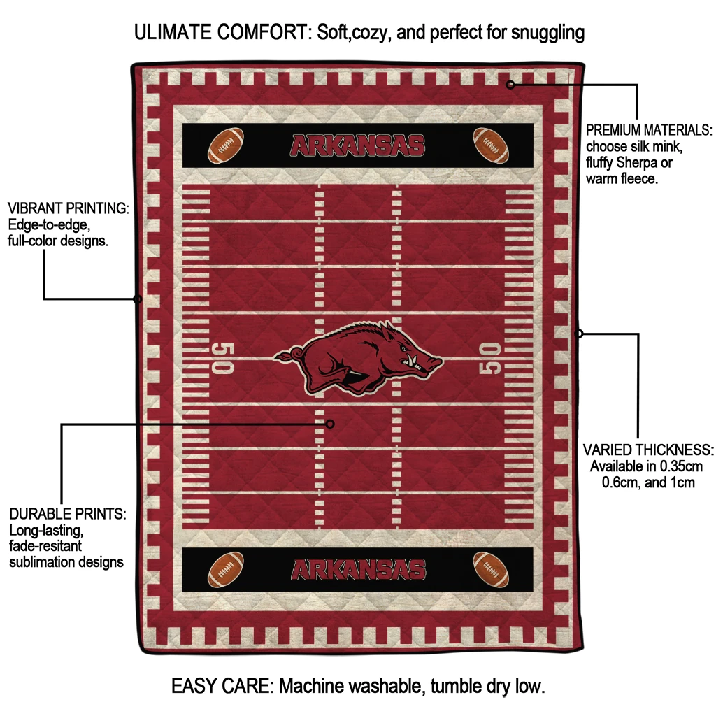 Wrap yourself in warmth and pride with the Arkansas Razorbacks Mickey Player Red Quilt Blanket from the Arkansas Razorbacks Blankets collection at Yes That Blanket. Made from 100% premium quilting-weight polyester blended with a touch of microfiber, this quilt offers a smooth, soft finish you’ll love. Choose between two quilting styles—Stipple or Diagonal—and enjoy the comfort of a cotton-filled layer inside that adds extra coziness for every season. The border is available in classic black or white, giving your design a clean, timeless edge.