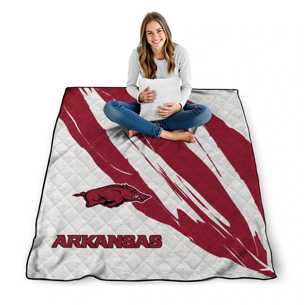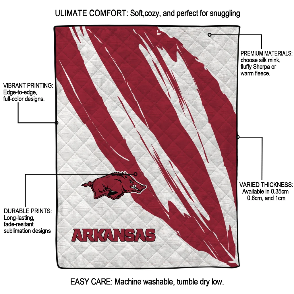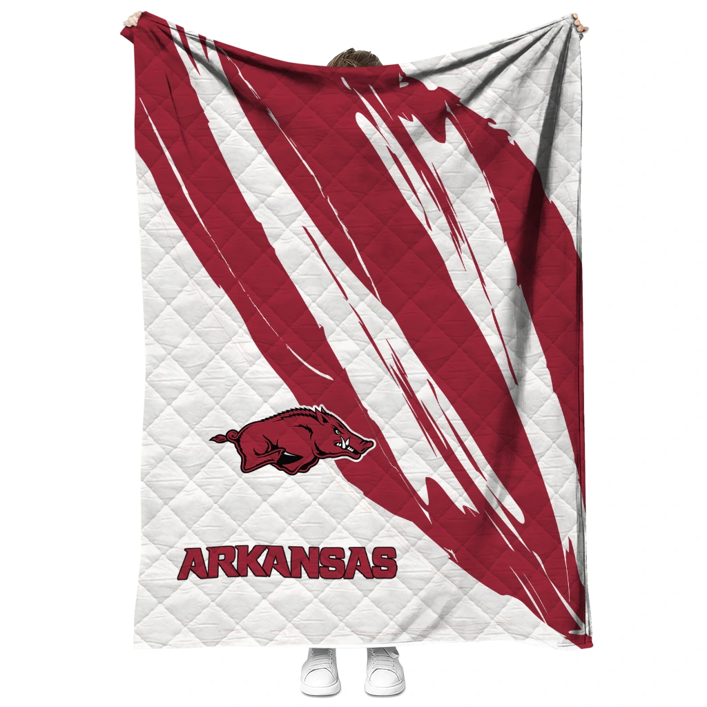 Wrap yourself in warmth and pride with the Arkansas Razorbacks Stroke Art Red White Quilt Blanket from the Arkansas Razorbacks Blankets collection at Yes That Blanket. Made from 100% premium quilting-weight polyester blended with a touch of microfiber, this quilt offers a smooth, soft finish you’ll love. Choose between two quilting styles—Stipple or Diagonal—and enjoy the comfort of a cotton-filled layer inside that adds extra coziness for every season. The border is available in classic black or white, giving your design a clean, timeless edge.