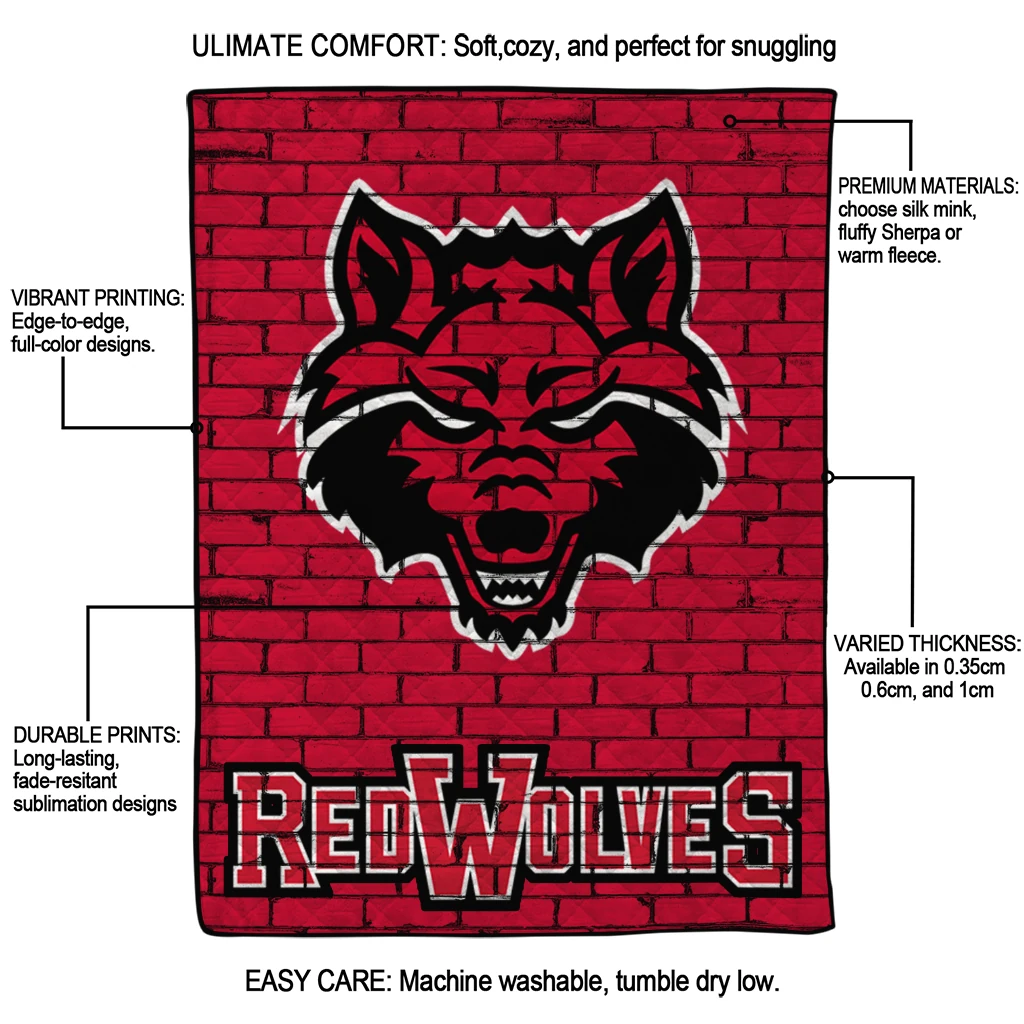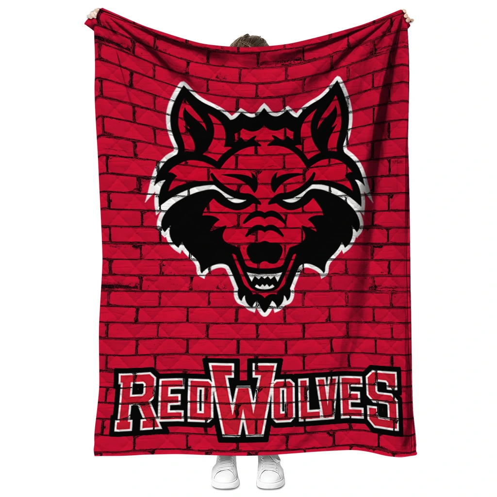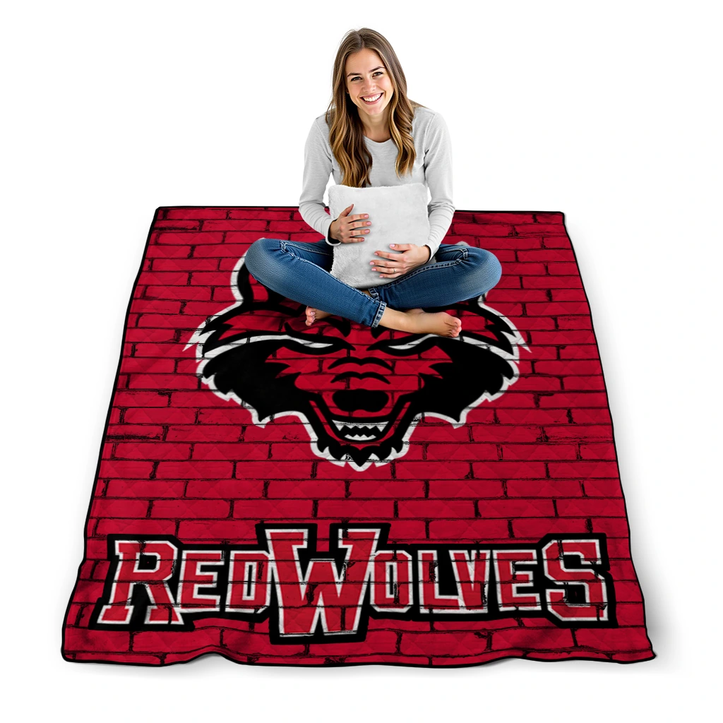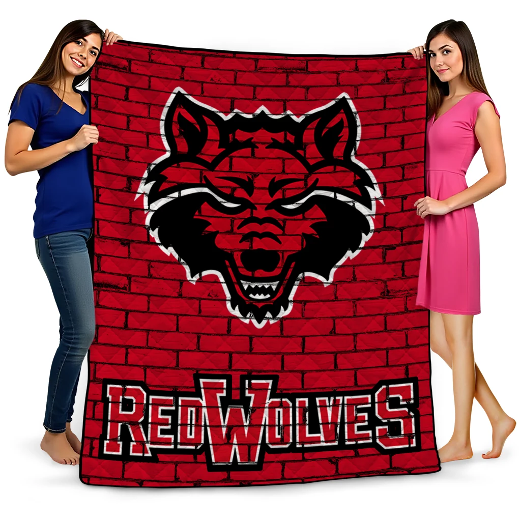 Arkansas State Red Wolves Brick Grid Scarlet Quilt Blanket