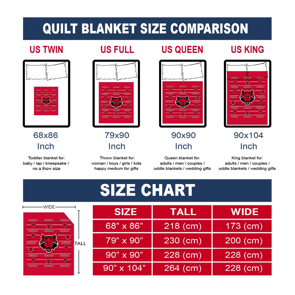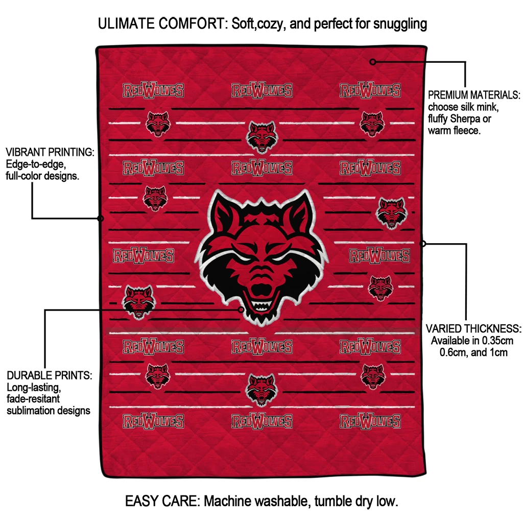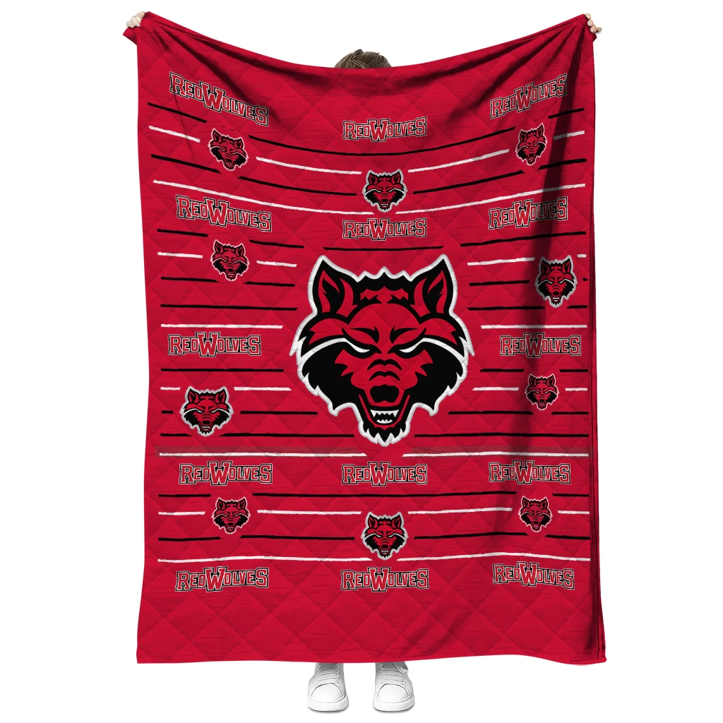 Wrap yourself in warmth and pride with the Arkansas State Red Wolves Handdrawn Stripes Scarlet Quilt Blanket from the Arkansas State Red Wolves Blankets collection at Yes That Blanket. Made from 100% premium quilting-weight polyester blended with a touch of microfiber, this quilt offers a smooth, soft finish you’ll love. Choose between two quilting styles—Stipple or Diagonal—and enjoy the comfort of a cotton-filled layer inside that adds extra coziness for every season. The border is available in classic black or white, giving your design a clean, timeless edge.