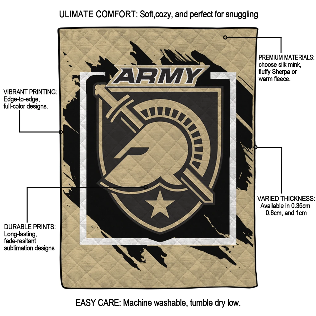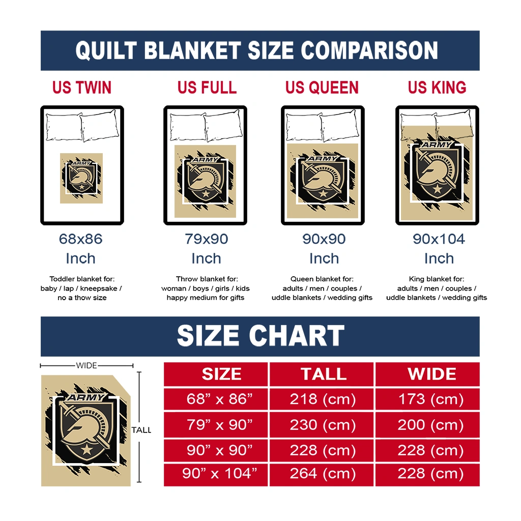 Wrap yourself in warmth and pride with the Army Black Knights Block Border Gold Quilt Blanket from the Army Black Knights Blankets collection at Yes That Blanket. Made from 100% premium quilting-weight polyester blended with a touch of microfiber, this quilt offers a smooth, soft finish you’ll love. Choose between two quilting styles—Stipple or Diagonal—and enjoy the comfort of a cotton-filled layer inside that adds extra coziness for every season. The border is available in classic black or white, giving your design a clean, timeless edge.