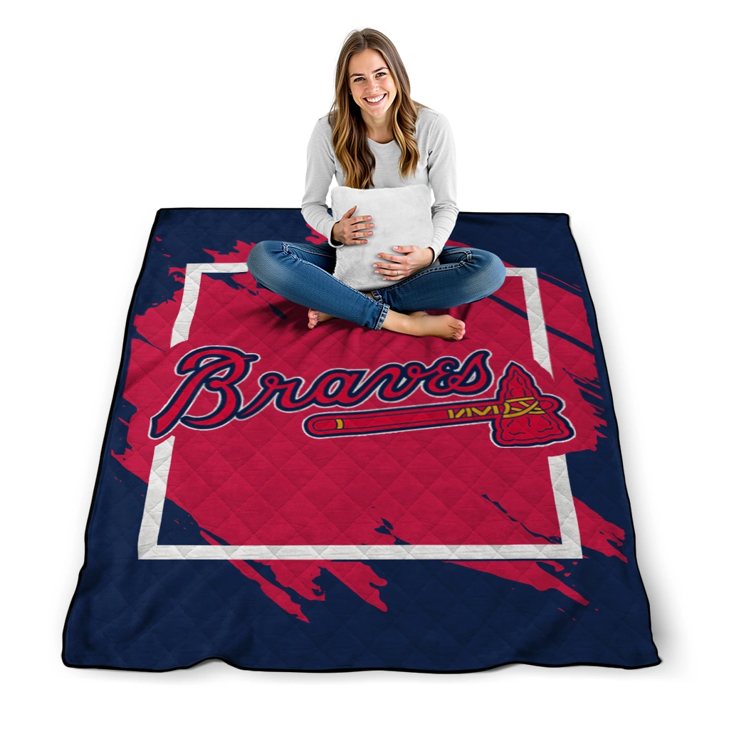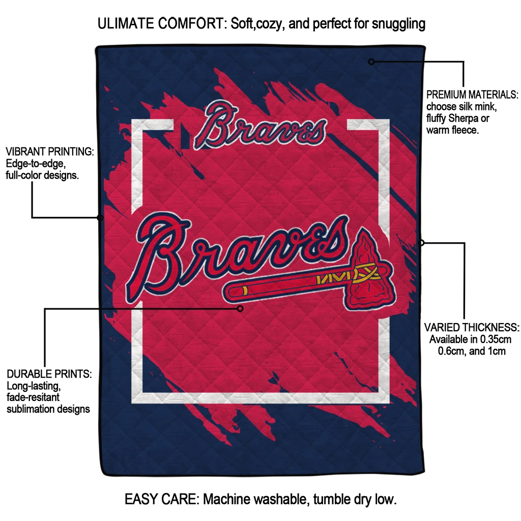 Wrap yourself in warmth and pride with the Atlanta Braves Block Border Navy Quilt Blanket from the Atlanta Braves Blankets collection at Yes That Blanket. Made from 100% premium quilting-weight polyester blended with a touch of microfiber, this quilt offers a smooth, soft finish you’ll love. Choose between two quilting styles—Stipple or Diagonal—and enjoy the comfort of a cotton-filled layer inside that adds extra coziness for every season. The border is available in classic black or white, giving your design a clean, timeless edge.
