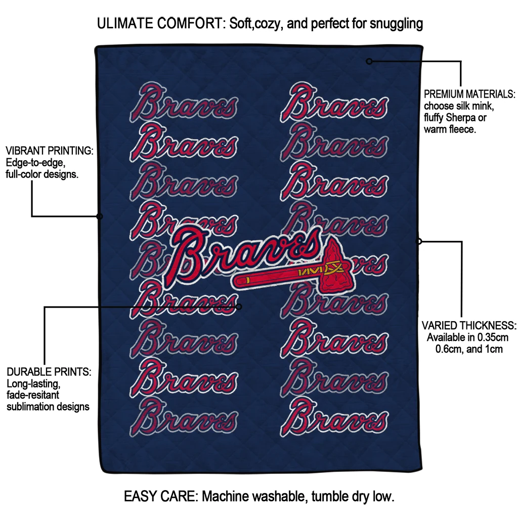 Wrap yourself in warmth and pride with the Atlanta Braves Bold Red Navy Quilt Blanket from the Atlanta Braves Blankets collection at Yes That Blanket. Made from 100% premium quilting-weight polyester blended with a touch of microfiber, this quilt offers a smooth, soft finish you’ll love. Choose between two quilting styles—Stipple or Diagonal—and enjoy the comfort of a cotton-filled layer inside that adds extra coziness for every season. The border is available in classic black or white, giving your design a clean, timeless edge.