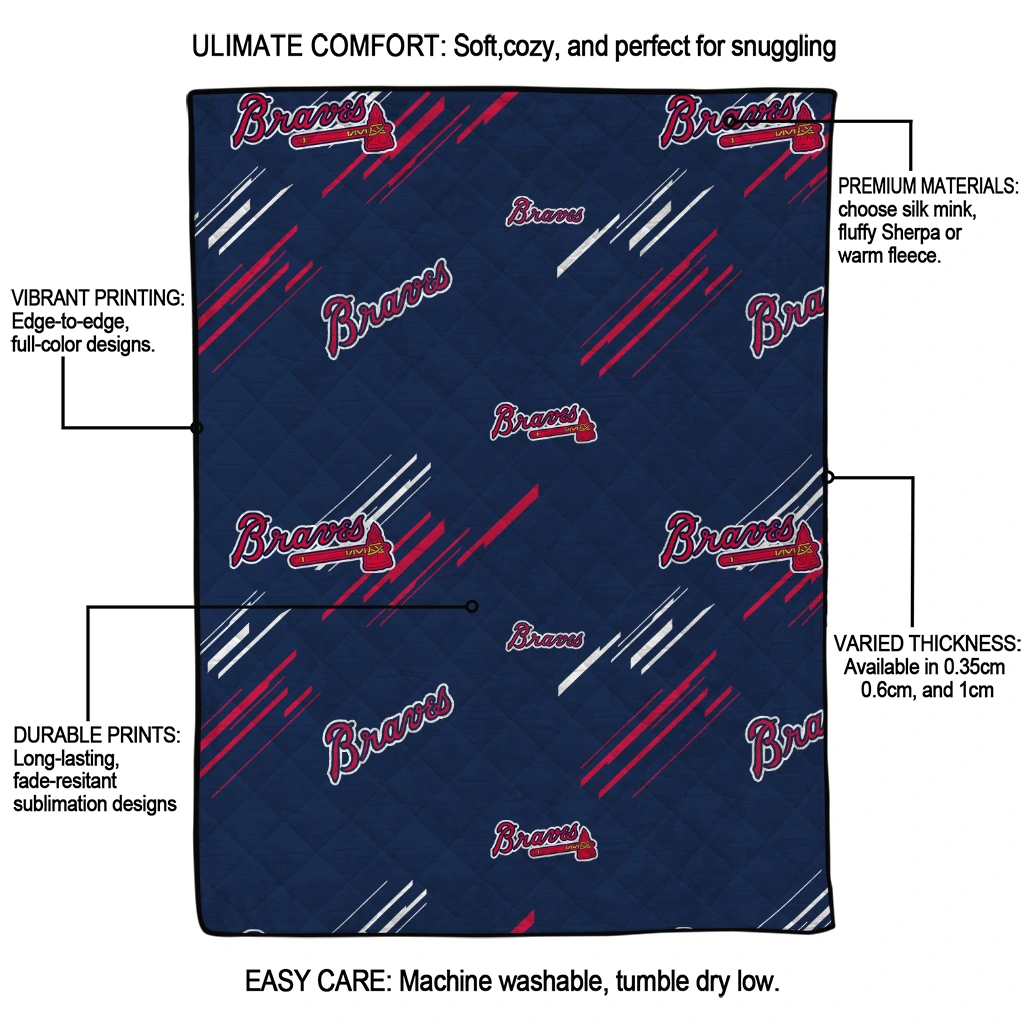 Atlanta Braves Sketch Lines Navy Quilt Blanket