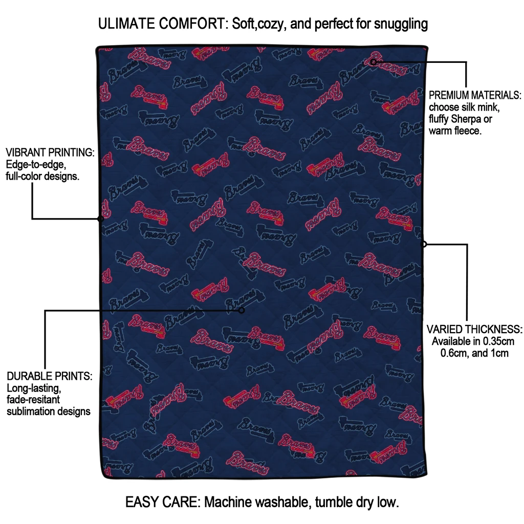 Wrap yourself in warmth and pride with the Atlanta Braves Solid Classic Navy Quilt Blanket from the Atlanta Braves Blankets collection at Yes That Blanket. Made from 100% premium quilting-weight polyester blended with a touch of microfiber, this quilt offers a smooth, soft finish you’ll love. Choose between two quilting styles—Stipple or Diagonal—and enjoy the comfort of a cotton-filled layer inside that adds extra coziness for every season. The border is available in classic black or white, giving your design a clean, timeless edge.