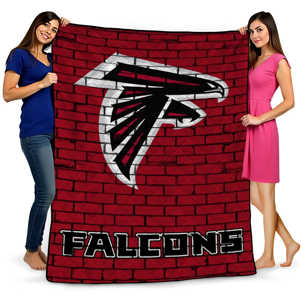 Wrap yourself in warmth and pride with the Atlanta Falcons Brick Grid Red Quilt Blanket from the Atlanta Falcons Blankets collection at Yes That Blanket. Made from 100% premium quilting-weight polyester blended with a touch of microfiber, this quilt offers a smooth, soft finish you’ll love. Choose between two quilting styles—Stipple or Diagonal—and enjoy the comfort of a cotton-filled layer inside that adds extra coziness for every season. The border is available in classic black or white, giving your design a clean, timeless edge.