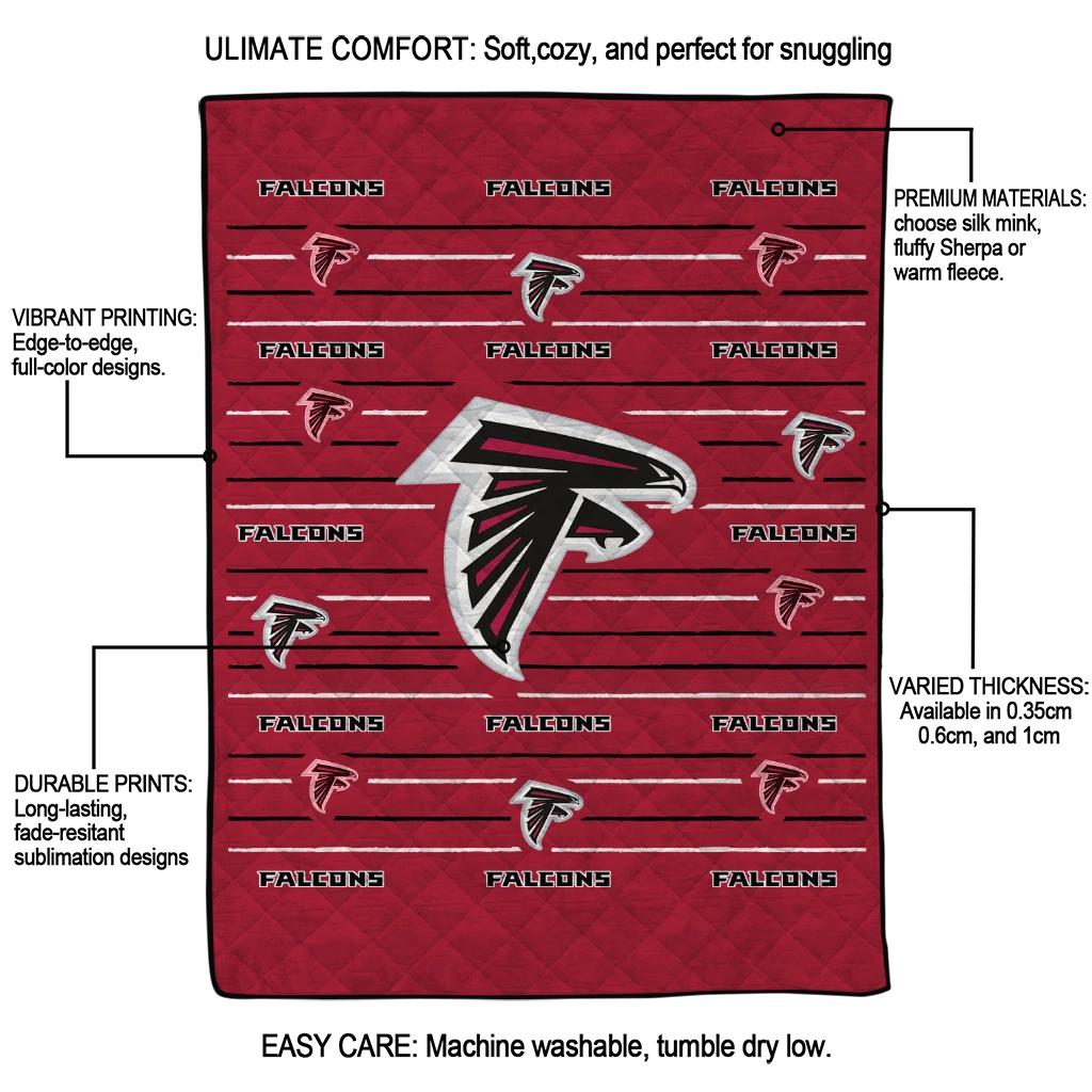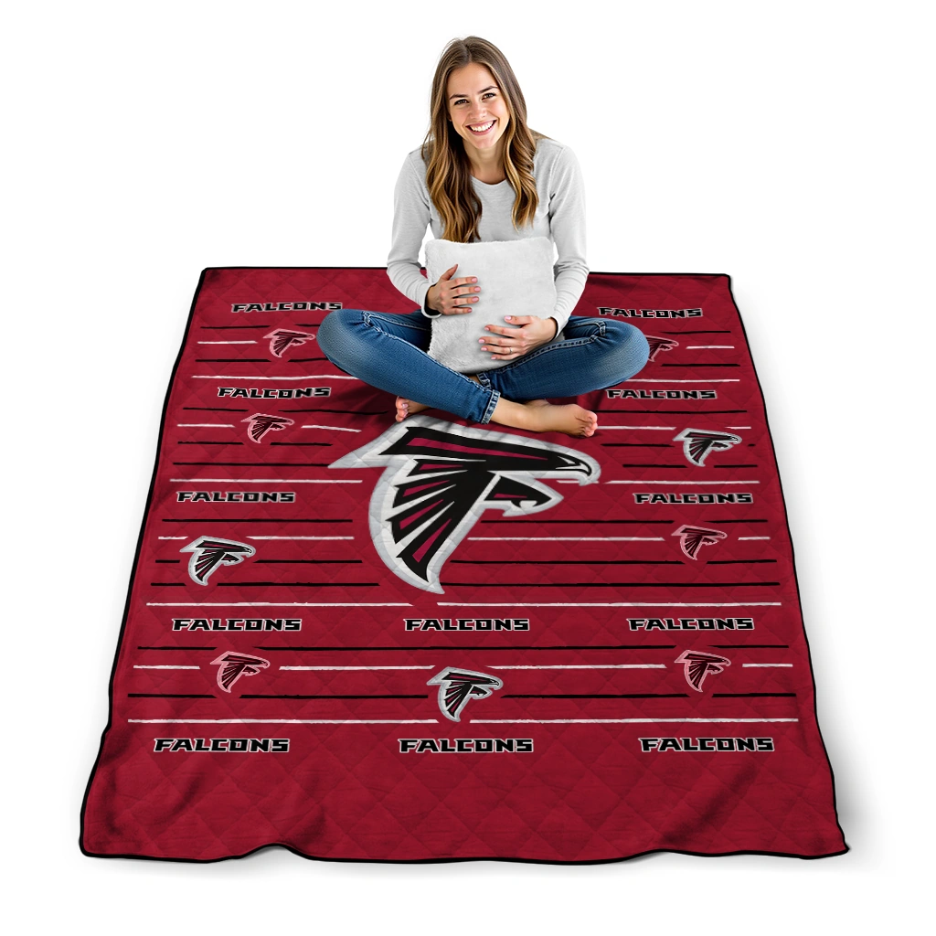 Wrap yourself in warmth and pride with the Atlanta Falcons Handdrawn Stripes Red Quilt Blanket from the Atlanta Falcons Blankets collection at Yes That Blanket. Made from 100% premium quilting-weight polyester blended with a touch of microfiber, this quilt offers a smooth, soft finish you’ll love. Choose between two quilting styles—Stipple or Diagonal—and enjoy the comfort of a cotton-filled layer inside that adds extra coziness for every season. The border is available in classic black or white, giving your design a clean, timeless edge.