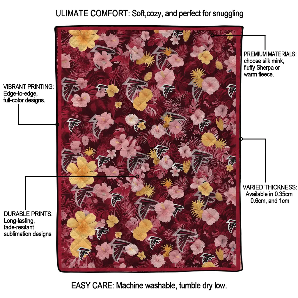 Wrap yourself in warmth and pride with the Atlanta Falcons Hibiscus Foliage Red Quilt Blanket from the Atlanta Falcons Blankets collection at Yes That Blanket. Made from 100% premium quilting-weight polyester blended with a touch of microfiber, this quilt offers a smooth, soft finish you’ll love. Choose between two quilting styles—Stipple or Diagonal—and enjoy the comfort of a cotton-filled layer inside that adds extra coziness for every season. The border is available in classic black or white, giving your design a clean, timeless edge.