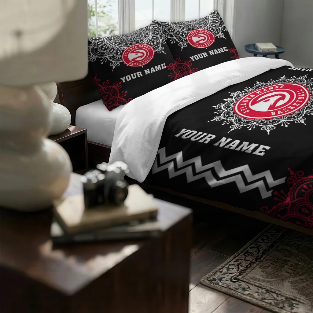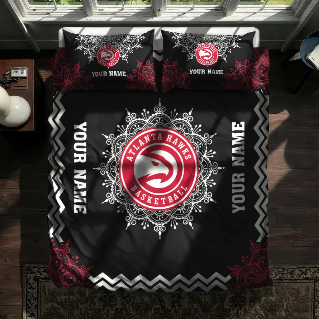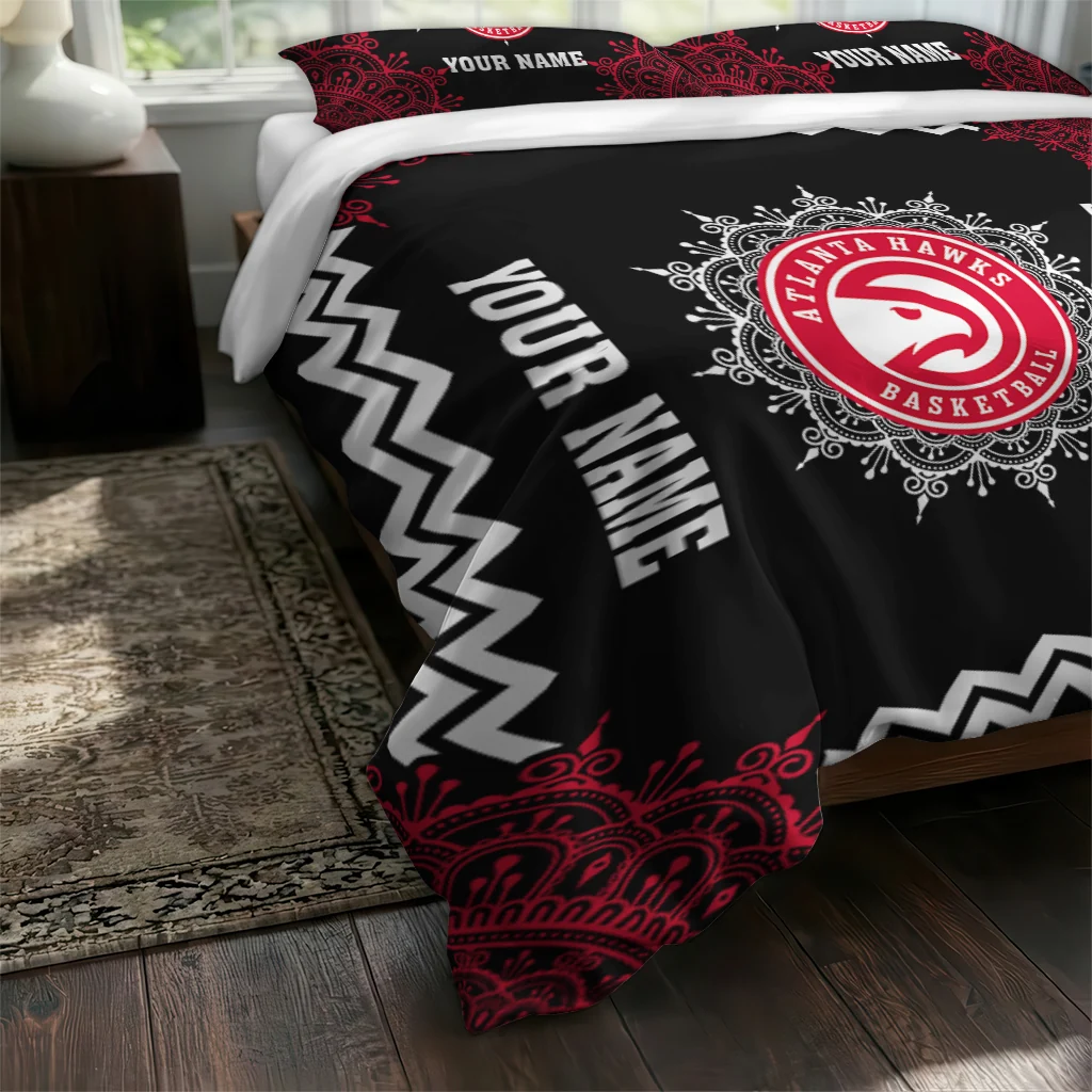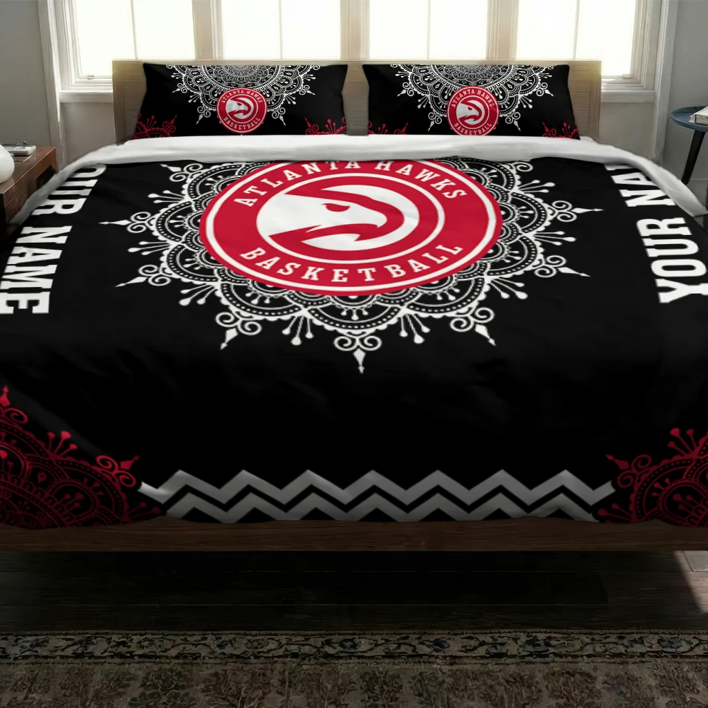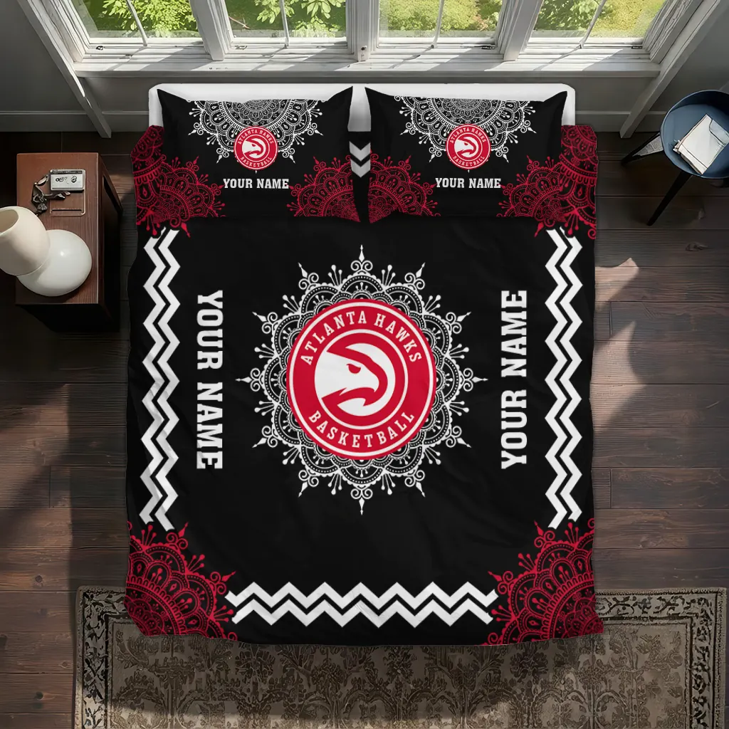 Atlanta Hawks Bedding Set – Customized Mandala Lacework Black Red