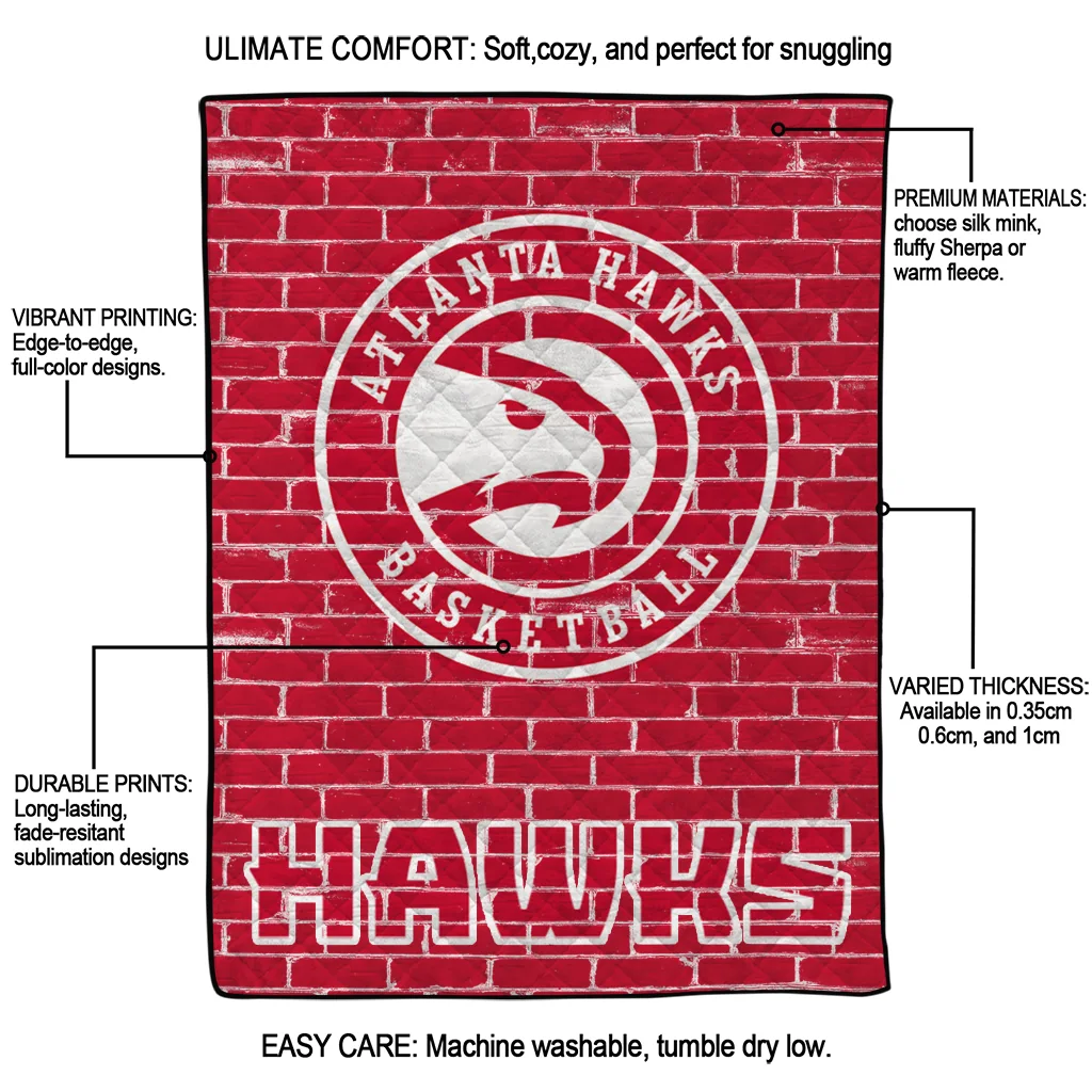 Wrap yourself in warmth and pride with the Atlanta Hawks Brick Grid Red Quilt Blanket from the Atlanta Hawks Blankets collection at Yes That Blanket. Made from 100% premium quilting-weight polyester blended with a touch of microfiber, this quilt offers a smooth, soft finish you’ll love. Choose between two quilting styles—Stipple or Diagonal—and enjoy the comfort of a cotton-filled layer inside that adds extra coziness for every season. The border is available in classic black or white, giving your design a clean, timeless edge.