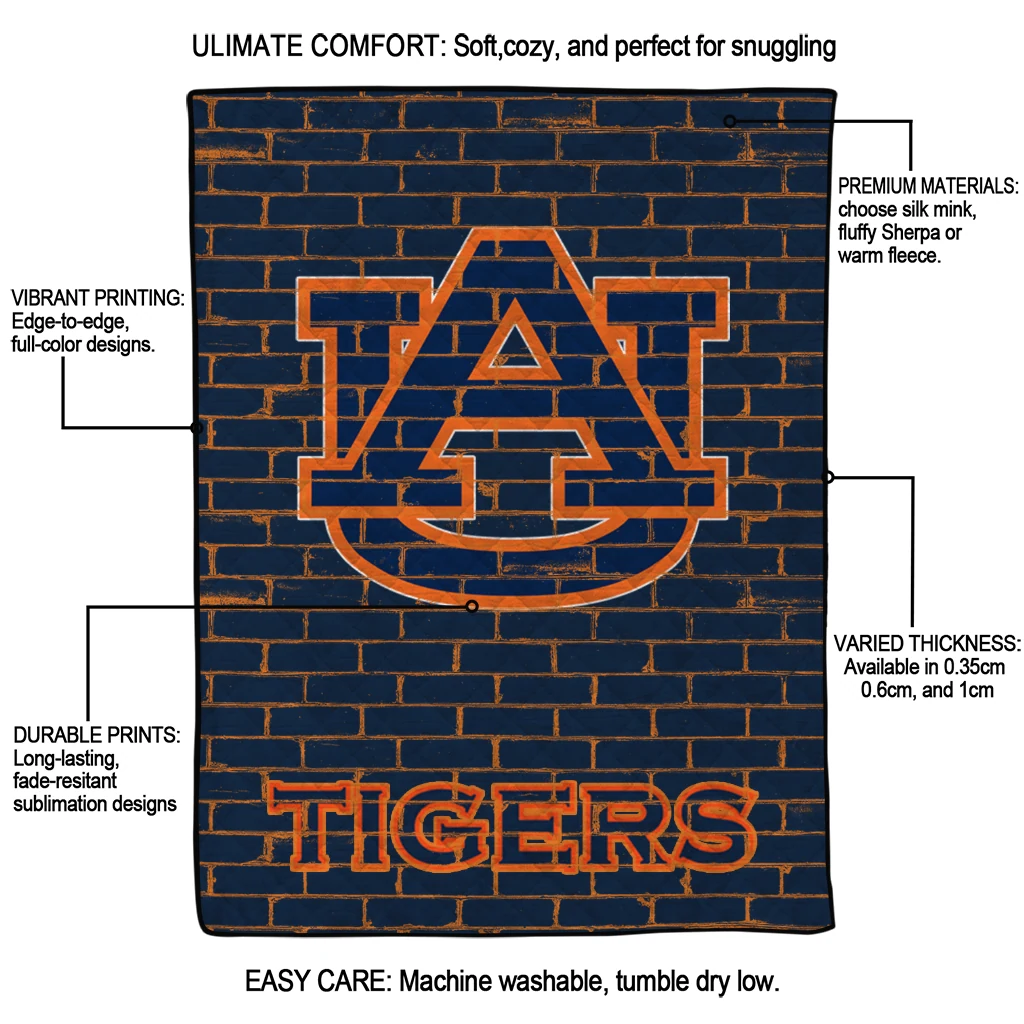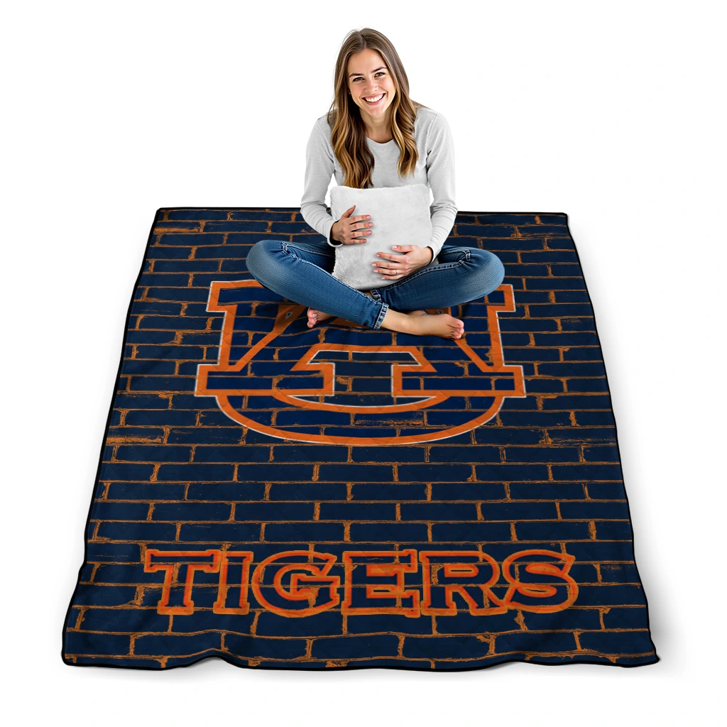 Wrap yourself in warmth and pride with the Auburn Tigers Brick Grid Navy Blue Quilt Blanket from the Auburn Tigers Blankets collection at Yes That Blanket. Made from 100% premium quilting-weight polyester blended with a touch of microfiber, this quilt offers a smooth, soft finish you’ll love. Choose between two quilting styles—Stipple or Diagonal—and enjoy the comfort of a cotton-filled layer inside that adds extra coziness for every season. The border is available in classic black or white, giving your design a clean, timeless edge.