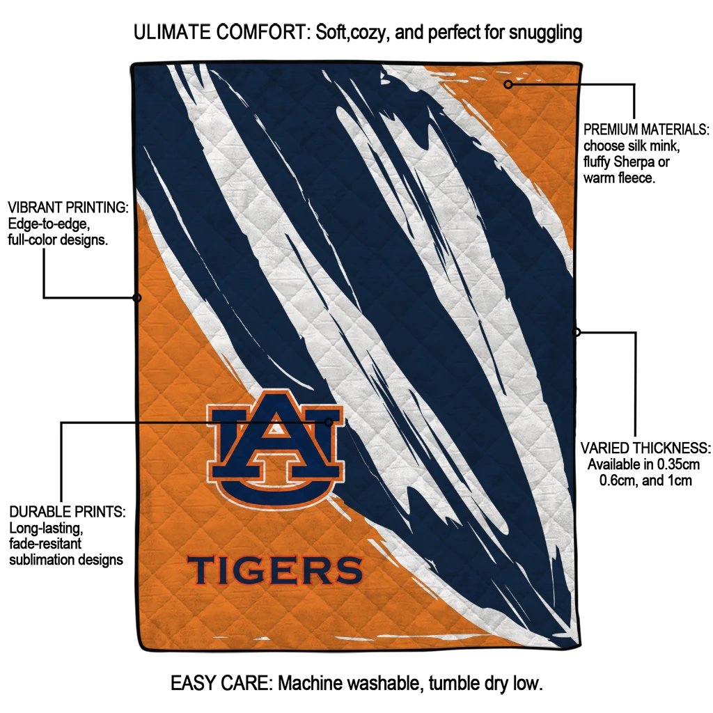 Wrap yourself in warmth and pride with the Auburn Tigers Stroke Art Navy Blue White Quilt Blanket from the Auburn Tigers Blankets collection at Yes That Blanket. Made from 100% premium quilting-weight polyester blended with a touch of microfiber, this quilt offers a smooth, soft finish you’ll love. Choose between two quilting styles—Stipple or Diagonal—and enjoy the comfort of a cotton-filled layer inside that adds extra coziness for every season. The border is available in classic black or white, giving your design a clean, timeless edge.