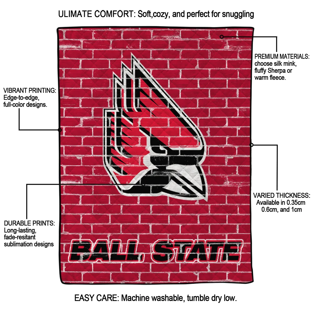 Wrap yourself in warmth and pride with the Ball State Cardinals Brick Grid Red Quilt Blanket from the Ball State Cardinals Blankets collection at Yes That Blanket. Made from 100% premium quilting-weight polyester blended with a touch of microfiber, this quilt offers a smooth, soft finish you’ll love. Choose between two quilting styles—Stipple or Diagonal—and enjoy the comfort of a cotton-filled layer inside that adds extra coziness for every season. The border is available in classic black or white, giving your design a clean, timeless edge.